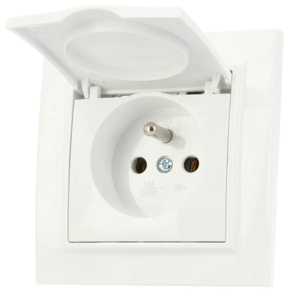 Gniazdo Quadra białe pojedyncze z bolcem i klapką