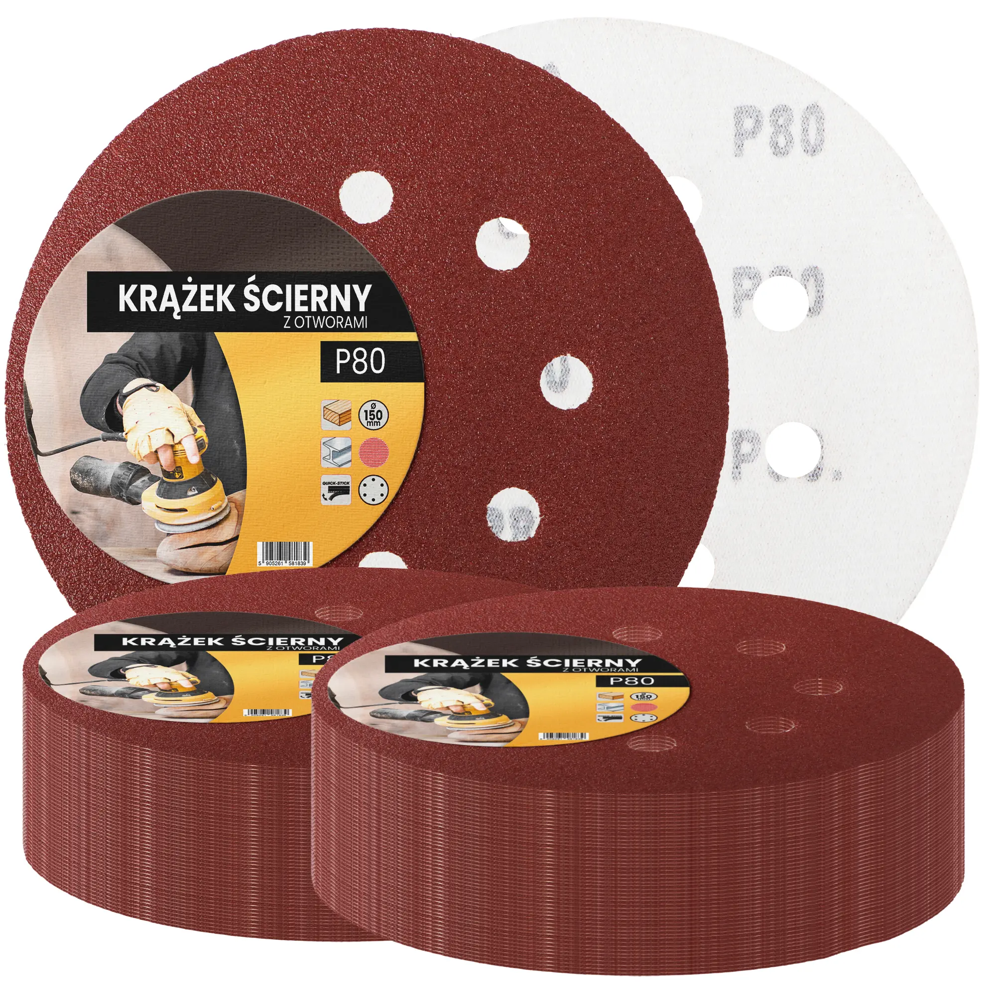 Krążek ścierny z otworami 150 mm P80 100 szt.