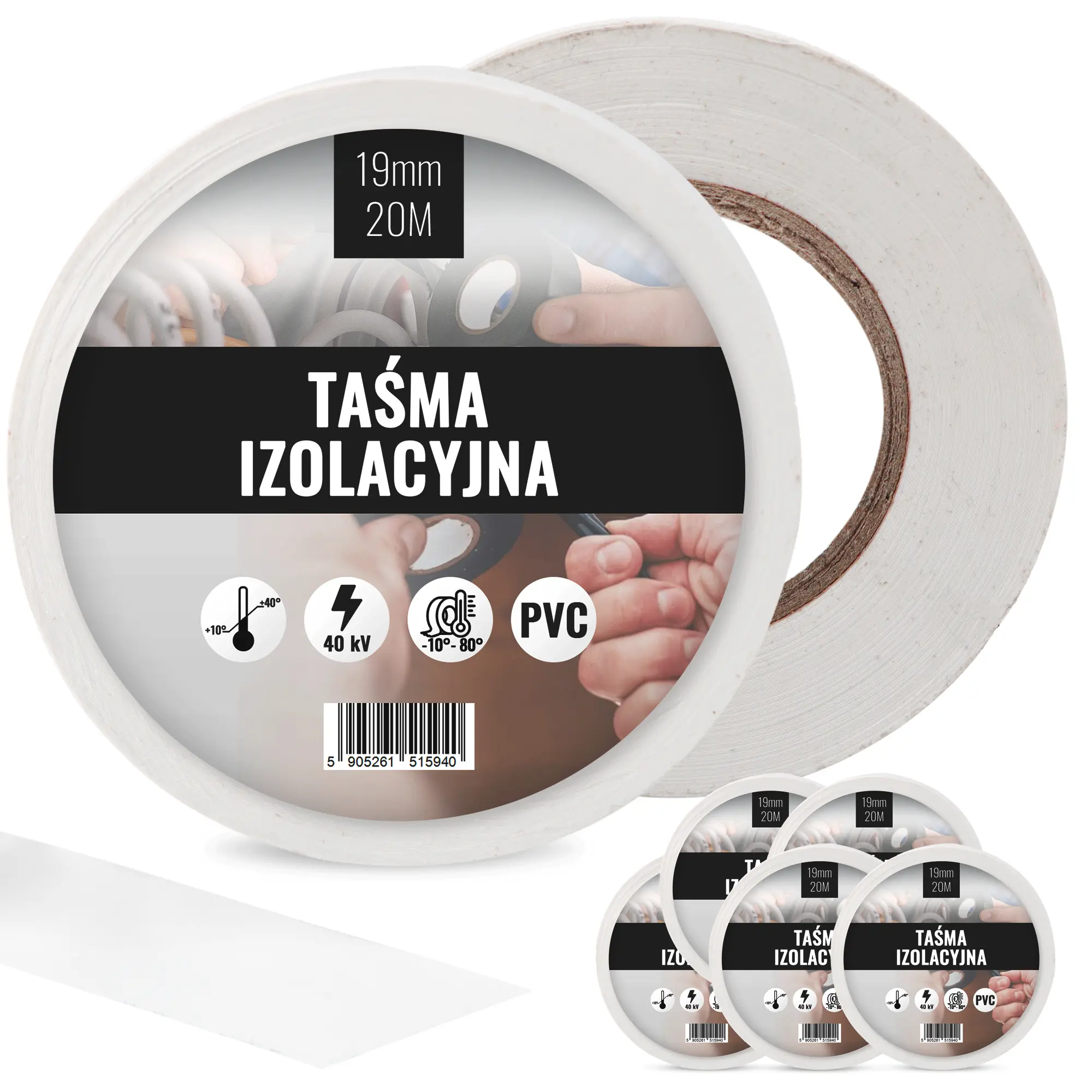 Taśma izolacyjna 19 mm x 20 m biały 5 szt.
