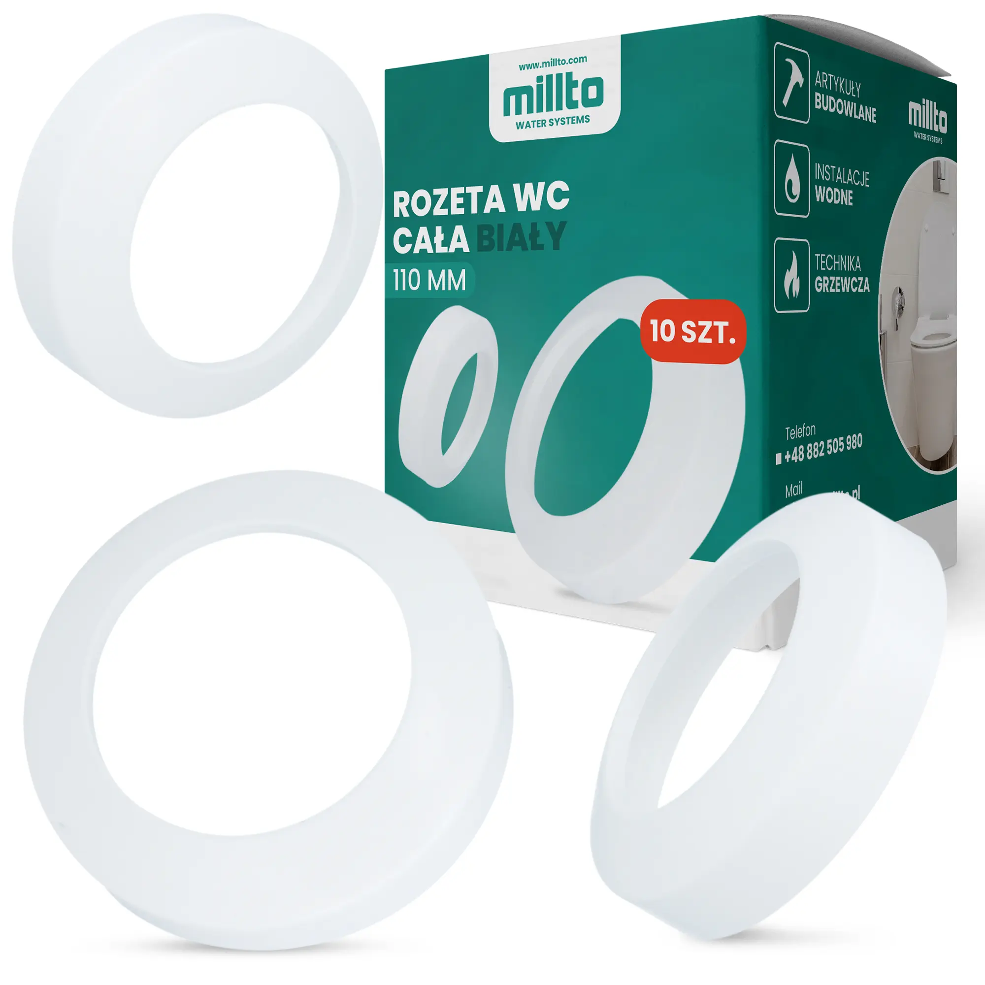 Biała rozeta wykorzystywana jest do maskowania odpływu WC w łazienkach. Uniwersalny rozmiar elementu sprawia, że pasuje on do większości wnętrz i nie ma problemu z jego dopasowanie.