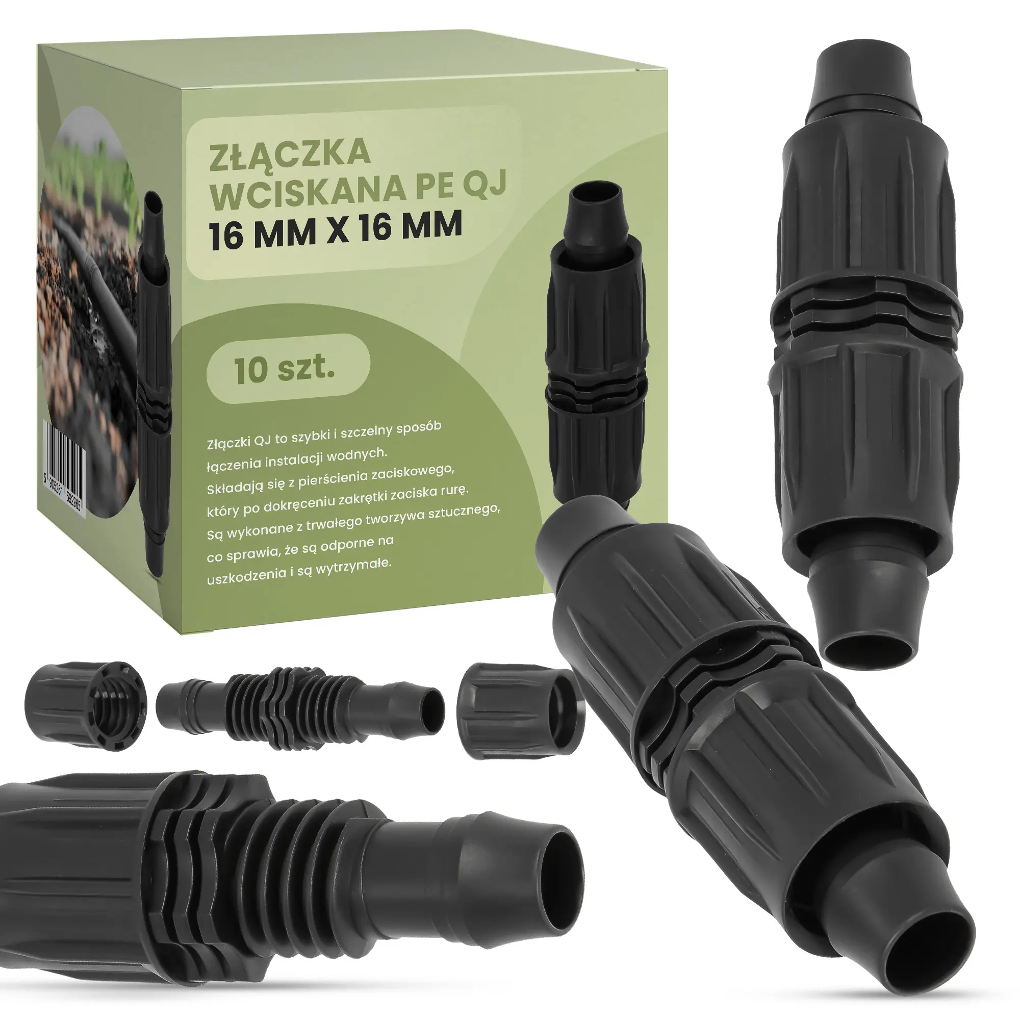 Dzięki niej możesz bez problemu i dodatkowych narzędzi połączyć rury PE lub linie kroplujące i stworzyć wydajny system, który przetransportuje wodę dokładnie tam, gdzie tego potrzebujesz. To prosty sposób na dbanie o rośliny bez wysiłku. Produkt sprawdza się w systemach domowych, jak i w profesjonalnych uprawach wielkopowierzchniowych.