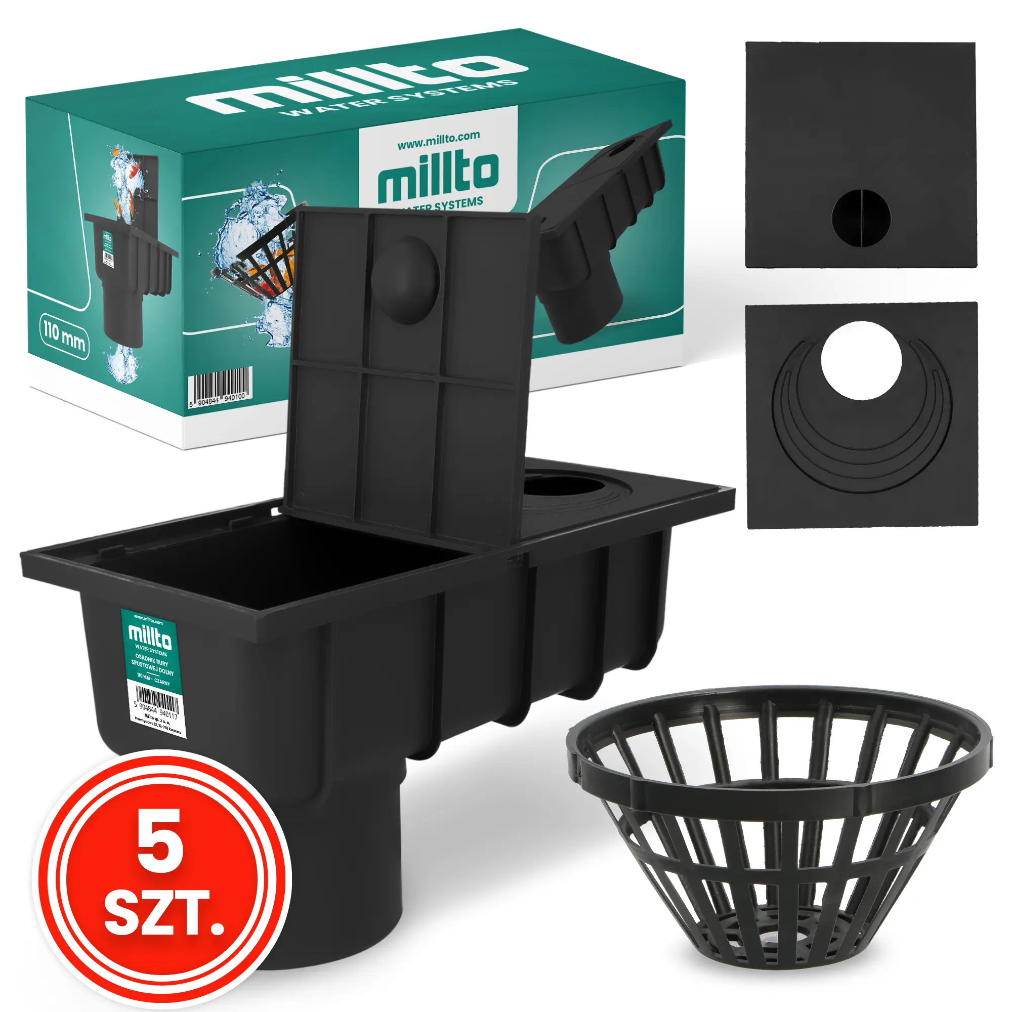 Osadnik rynnowy dolny 110 mm czarny 5 szt.