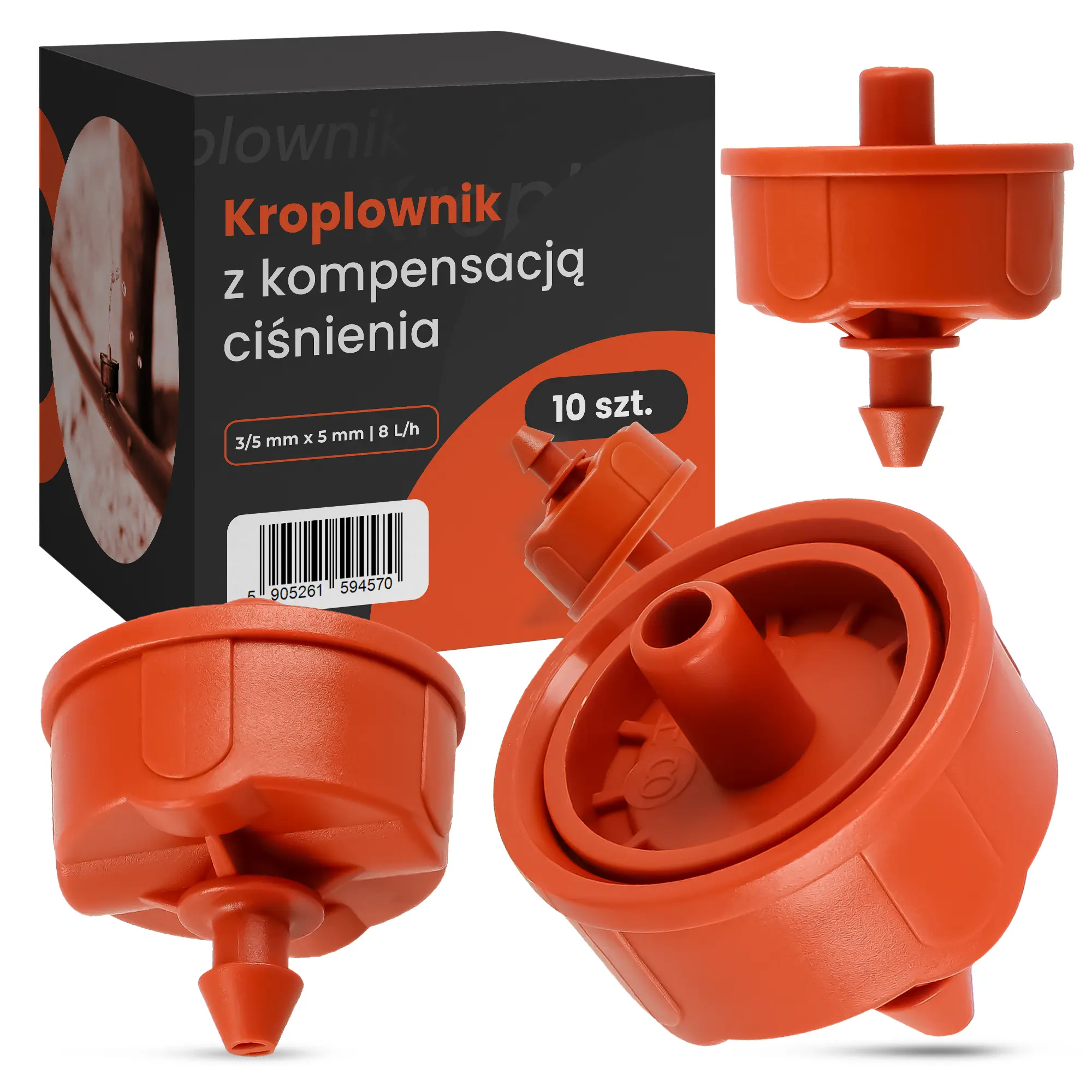 Kroplownik z kompensacją ciśnienia 3/5 mm x 5 mm 8 L/h - 10 szt