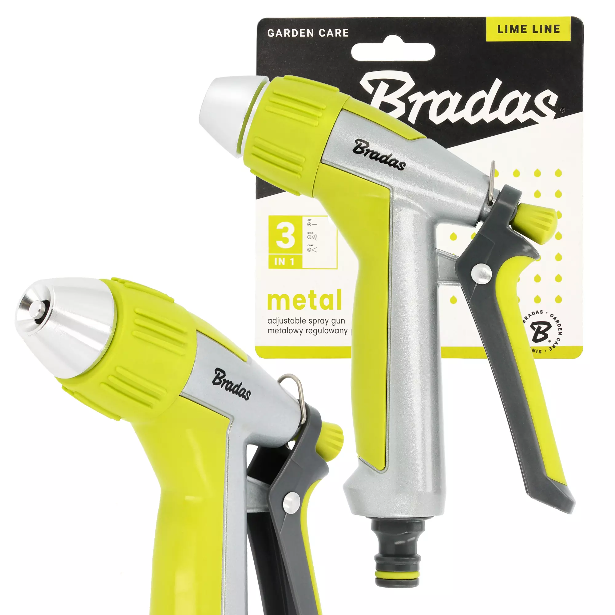 Szukasz nowoczesnych, a przede wszystkim praktycznych elementów wyposażenia ogrodu, które pomogą Ci o niego zadbać. Wybierz najwyższą funkcjonalność, która sprawdzi się w każdych warunkach. Metalowy pistolet do węża LIME LINE z funkcją regulacji to wielofunkcyjne akcesorium, które sprawdzi się w wielu codziennych zadaniach. Dzięki niemu nie tylko nawodnisz rabaty kwiatowe, trawnik, czy ogródek warzywny. Końcówka może być wykorzystana do czynności porządkowych na działce. Z jej pomocą umyjesz sprzęt ogrodowy, przygotujesz meble do sezonu lub wyczyścisz chodniki wokół budynku.