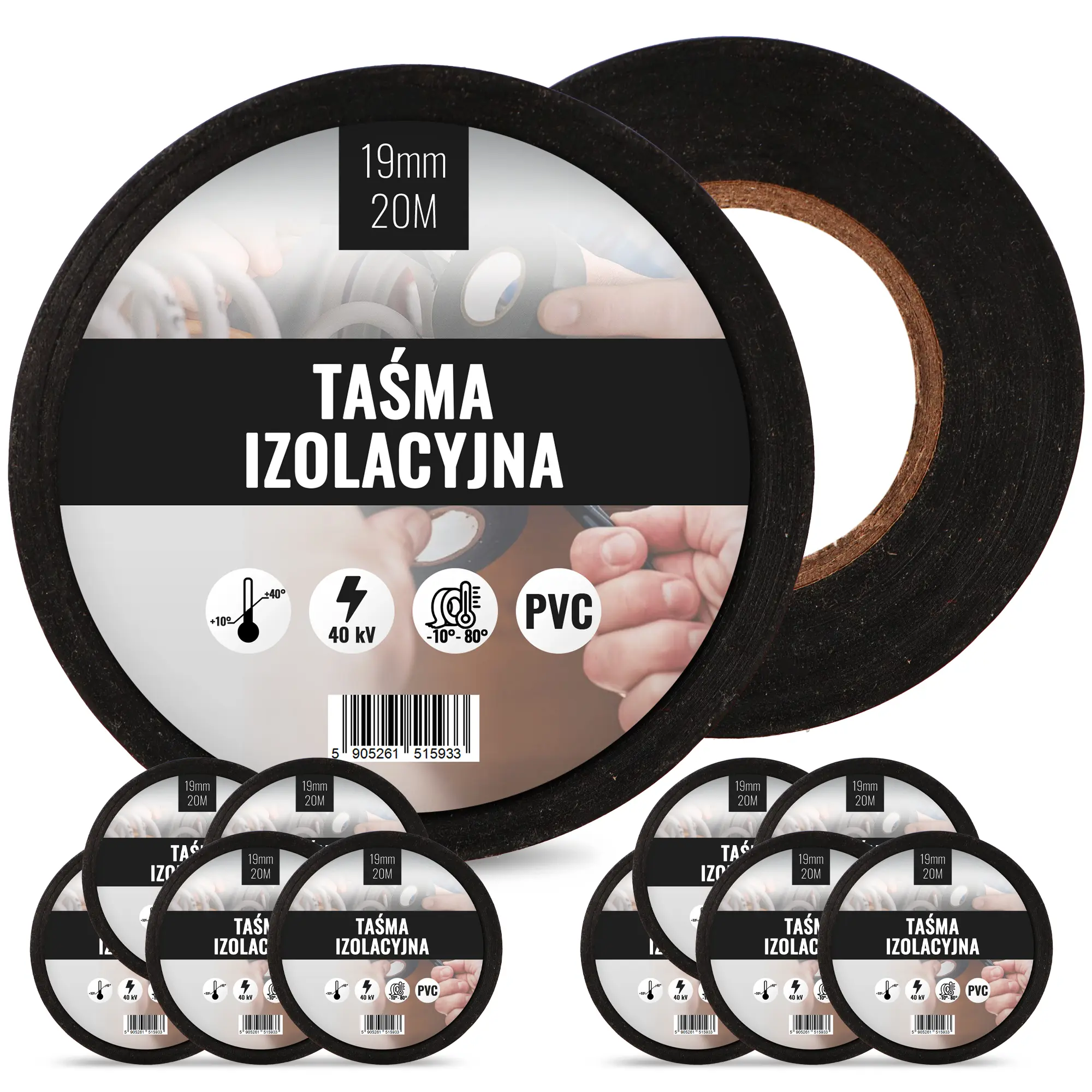Taśma izolacyjna 19 mm x 20 m czarny 10 szt.
