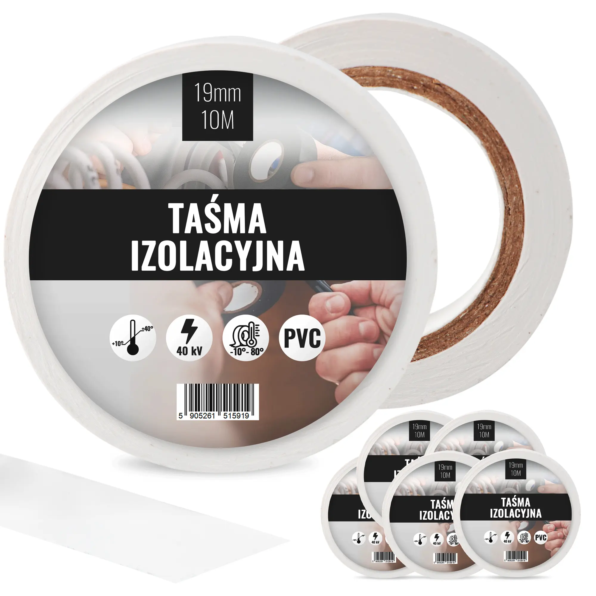 Taśma izolacyjna 19 mm x 10 m biały 5 szt.