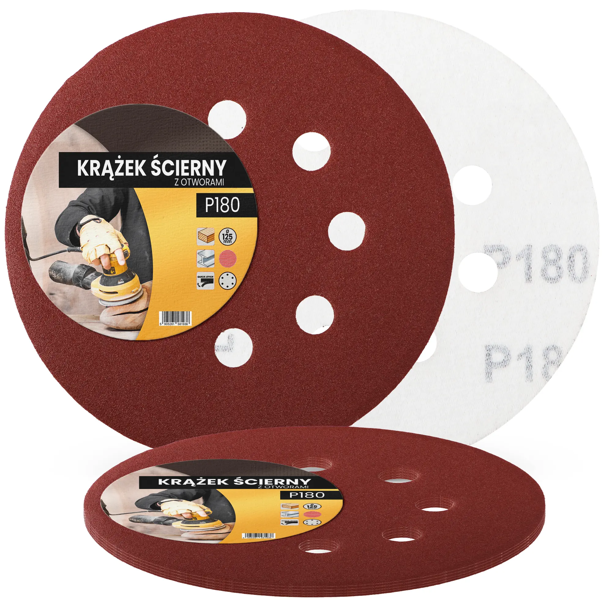 Krążek ścierny z otworami 125 mm P180 5 szt.