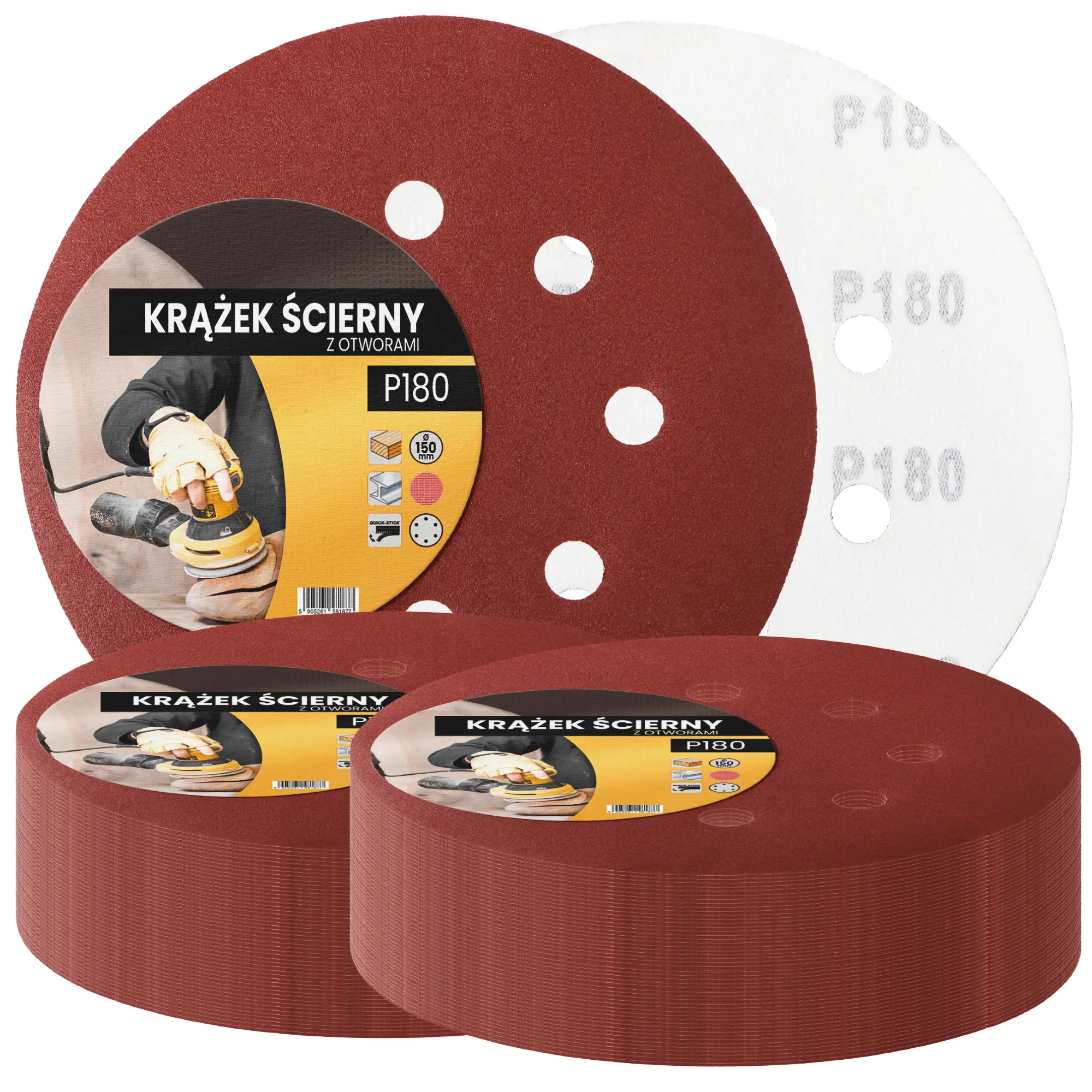 Krążek ścierny z otworami 150 mm P180 100 szt.