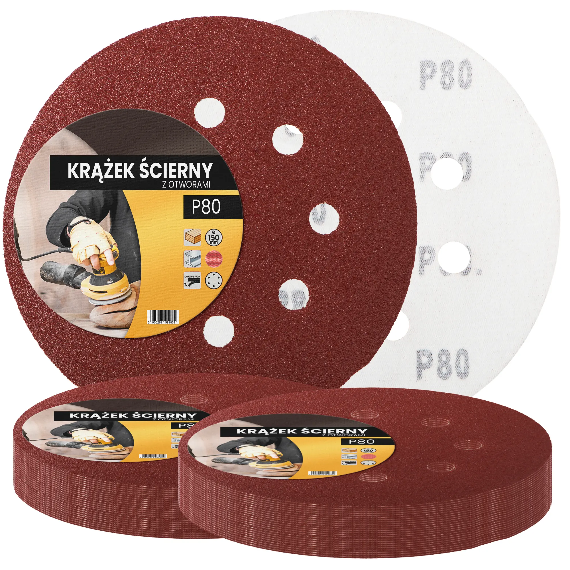 Krążek ścierny z otworami 150 mm P80 50 szt