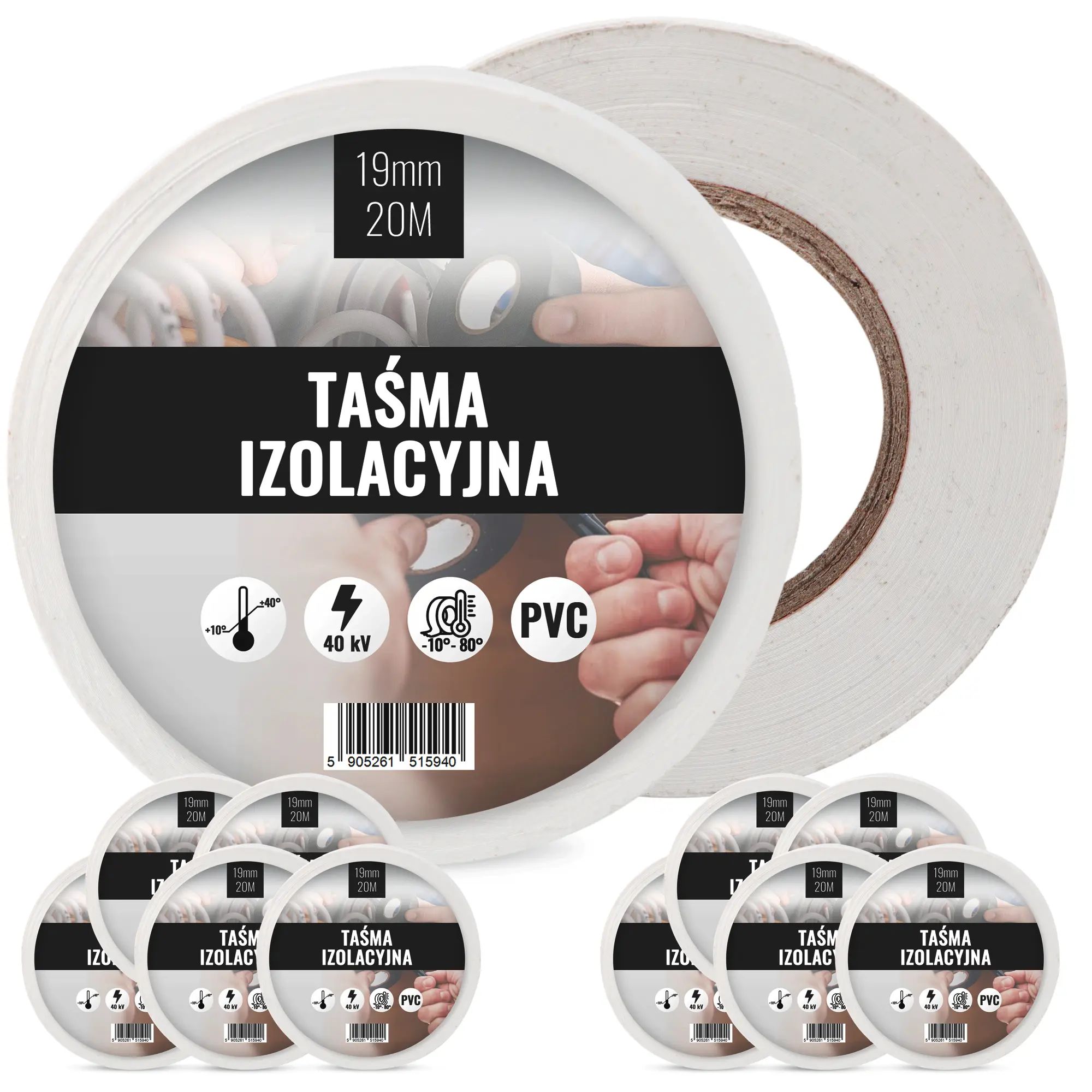 Taśma izolacyjna 19 mm x 20 m biały 10 szt.