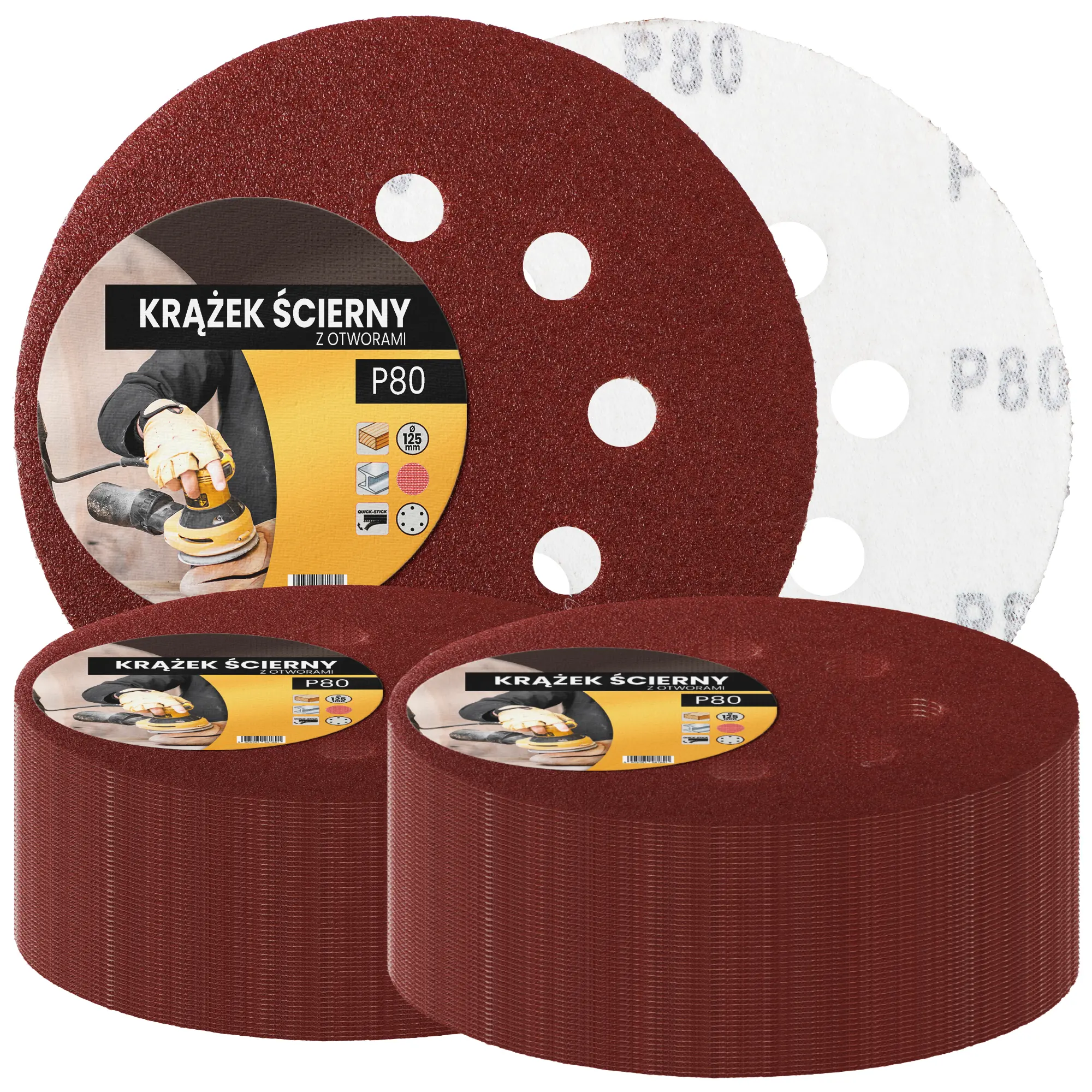 Krążek ścierny z otworami 125 mm P80 100 szt
