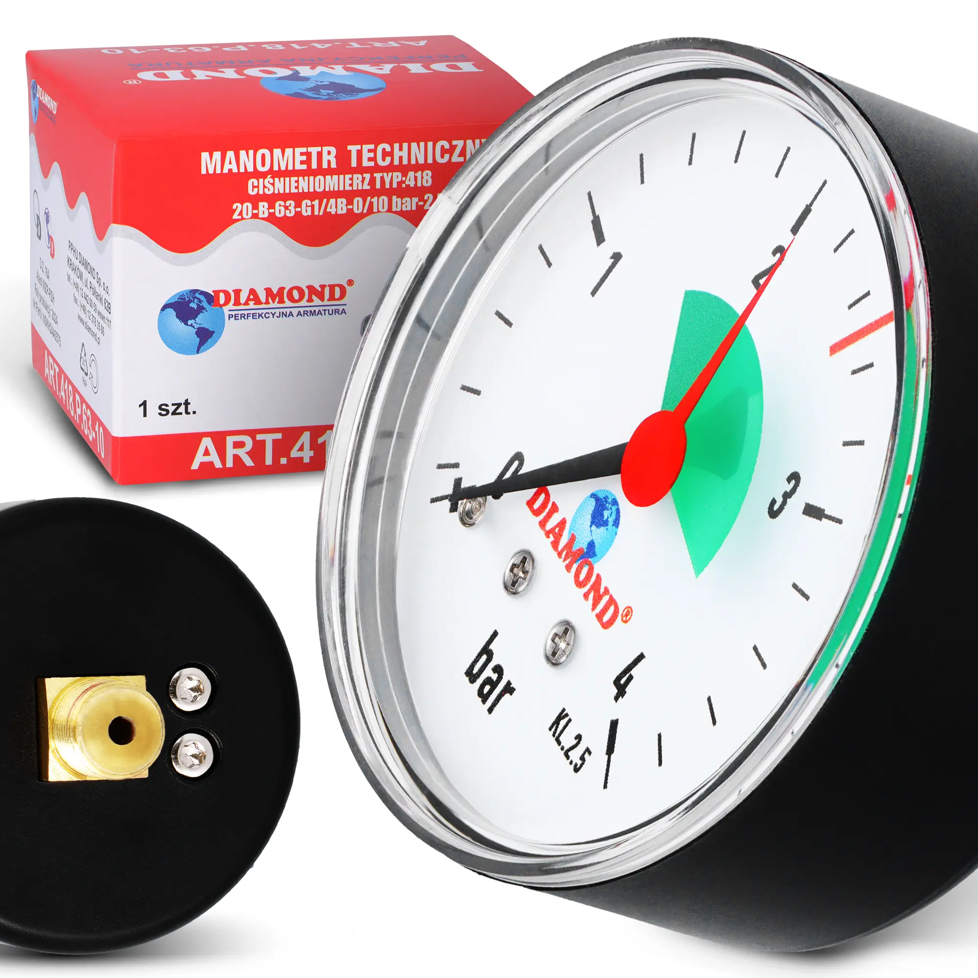 Przyłącza umieszczone mogą być z tyłu lub od dołu, co ułatwia montaż na ścianie, kolektorze lub kotle. Dzięki temu można szybko sprawdzić ciśnienie bez potrzeby ingerowania w instalację. Pomiar jest prosty i natychmiastowy.
