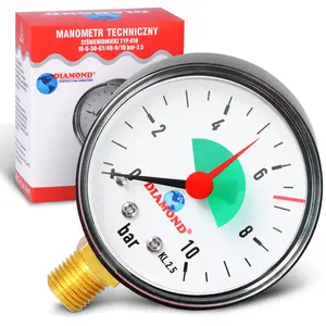 Ciśnieniomierz występuje w wersjach z różnymi skalami i rozmiarami obudowy, co pozwala na dobór do konkretnego systemu.
