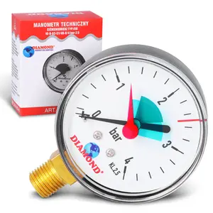 Ciśnieniomierz występuje w wersjach z różnymi skalami i rozmiarami obudowy, co pozwala na dobór do konkretnego systemu.