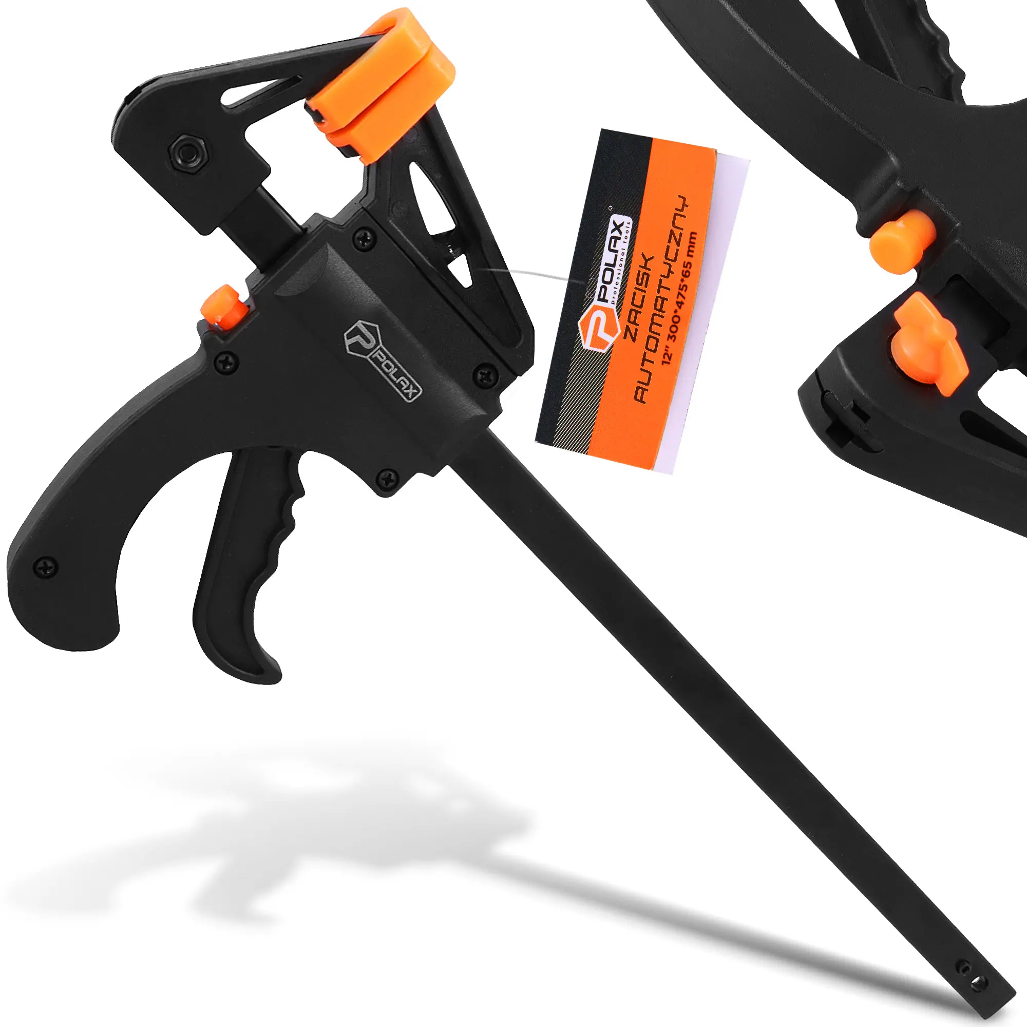 Automatyczny ścisk stolarski został zaprojektowany z myślą o łatwym mocowaniu elementów podczas prac z drewnem i innymi materiałami. Wyróżnia się ergonomicznym kształtem, który zapewnia wygodny chwyt.