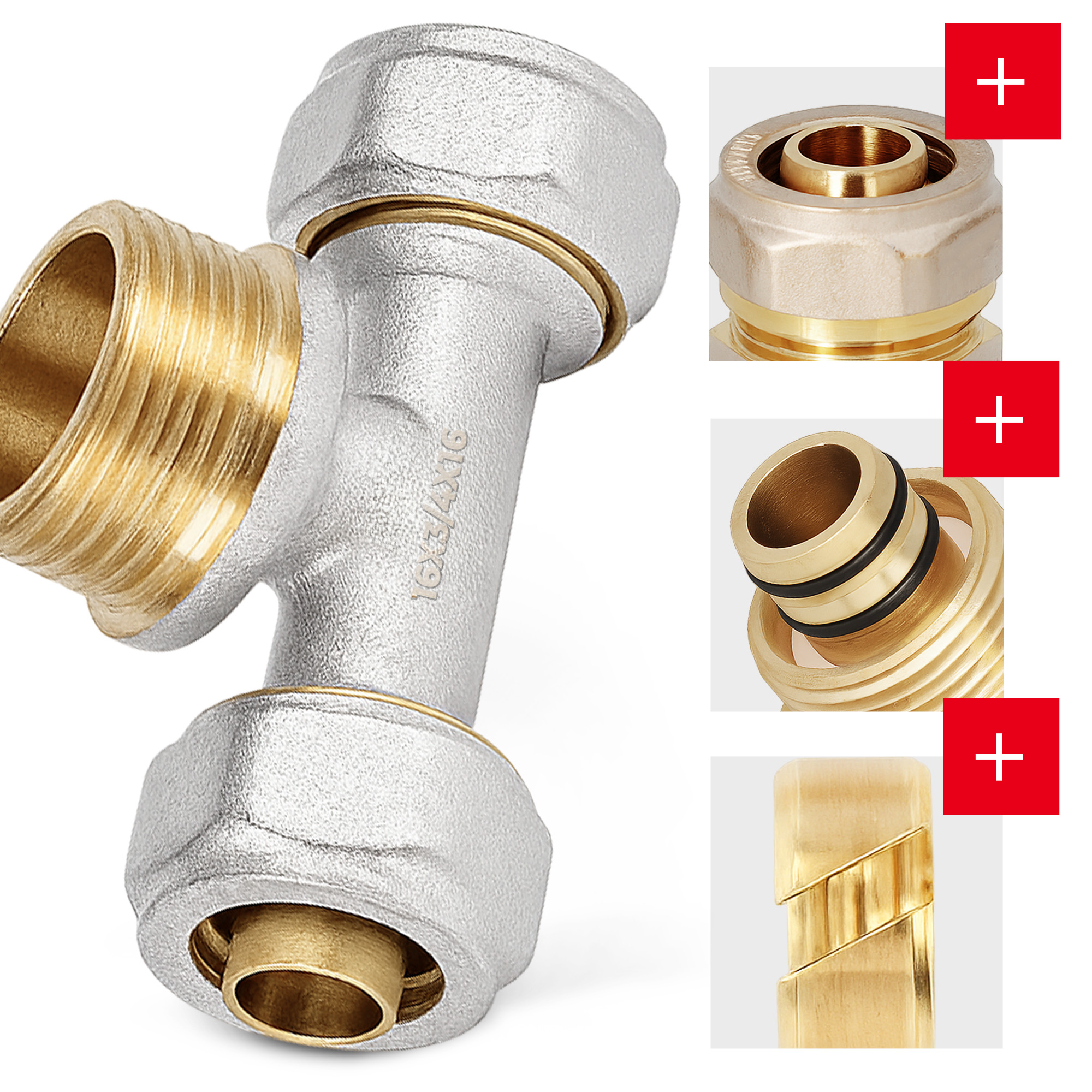 Produkt stosowany jest w systemach PEX-AL-PEX do rozgałęziania przewodów wodociągowych i grzewczych. Wyposażony w gwinty G i zacisk, zapewnia trwałe połączenie bez konieczności stosowania dodatkowych uszczelnień.