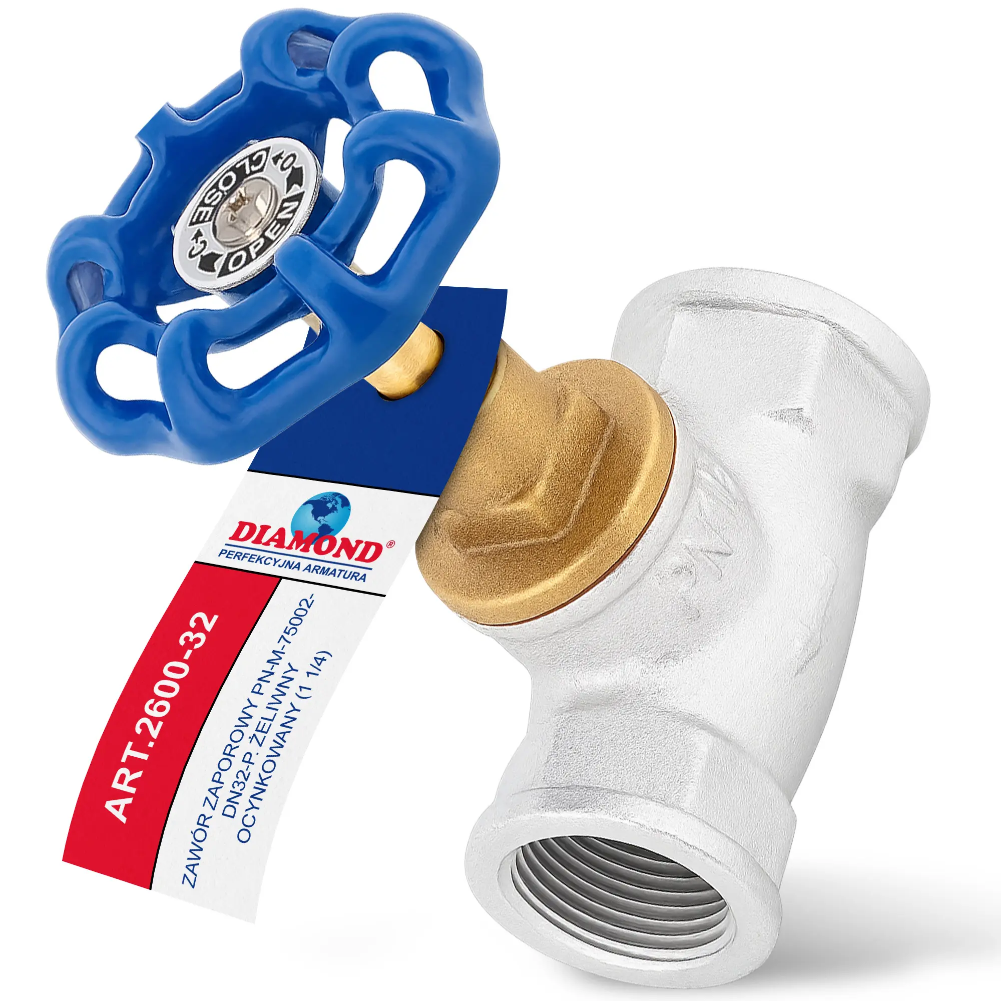 Zawór zaporowy przeznaczony jest do pracy w instalacjach wodociągowych. Materiał korpusu to żeliwo pokryte warstwą ocynku, co zabezpiecza przed korozją.