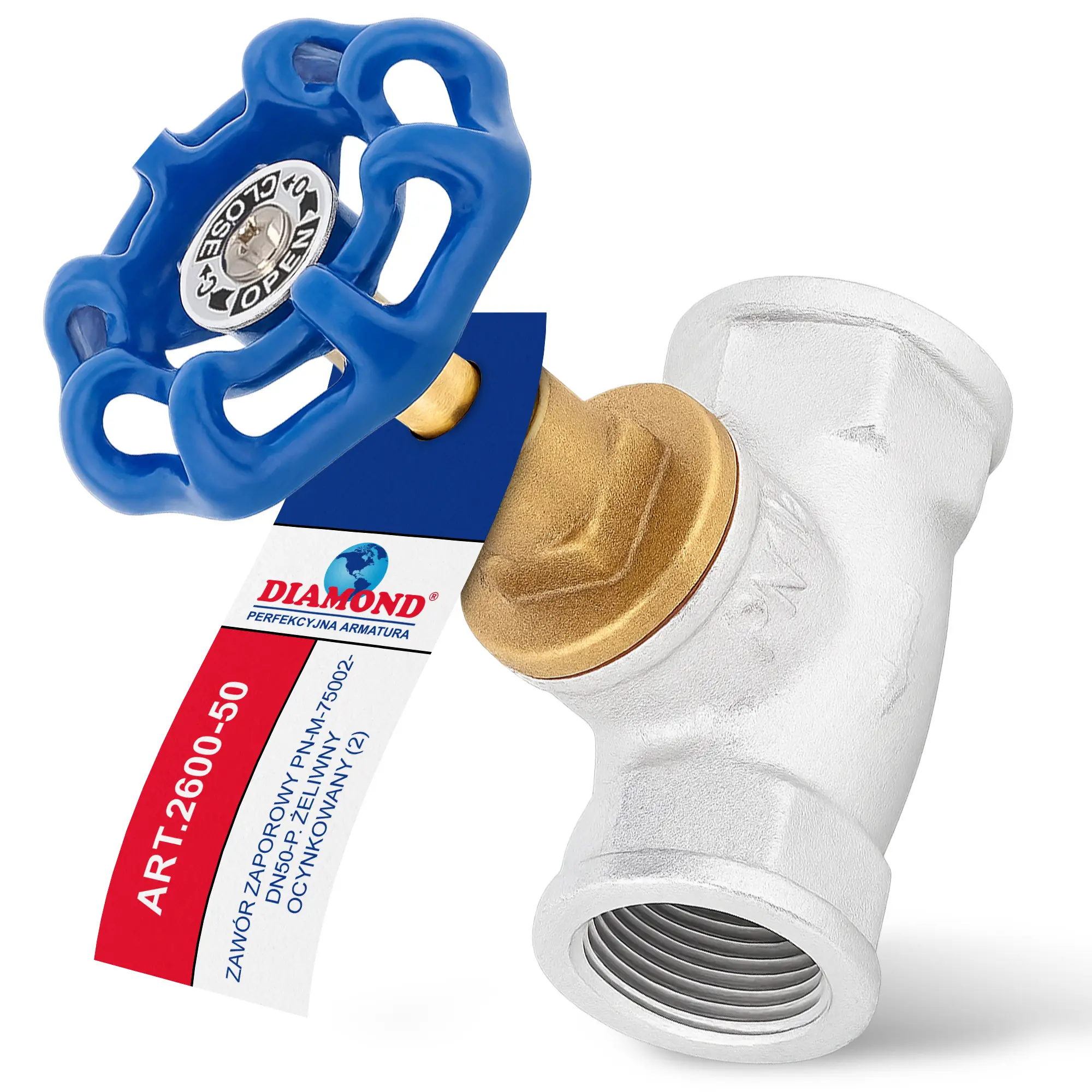 Zawór zaporowy przeznaczony jest do pracy w instalacjach wodociągowych. Materiał korpusu to żeliwo pokryte warstwą ocynku, co zabezpiecza przed korozją.