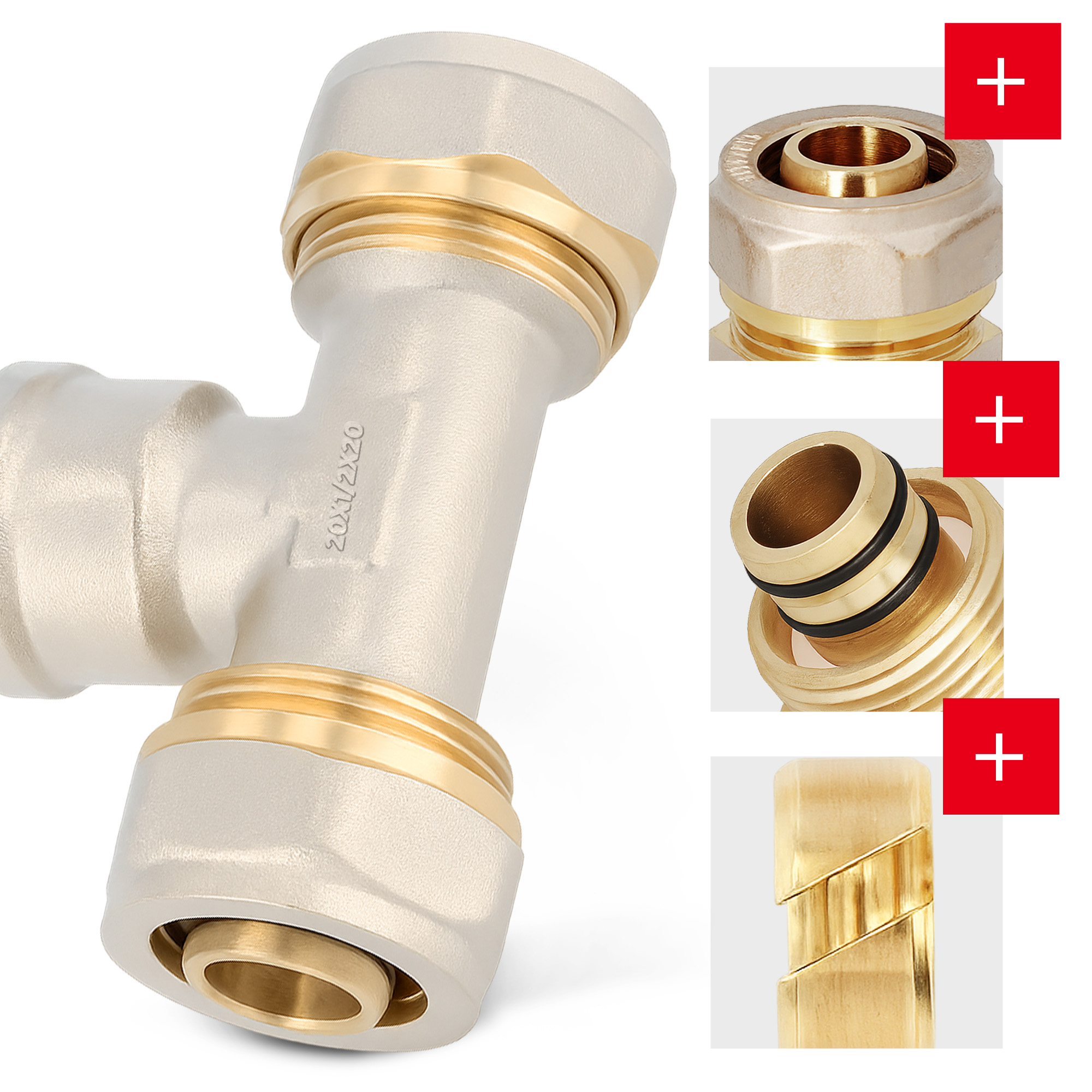 Produkt stosowany jest w systemach PEX-AL-PEX do rozgałęziania przewodów wodociągowych i grzewczych. Wyposażony w gwinty G i zacisk, zapewnia trwałe połączenie bez konieczności stosowania dodatkowych uszczelnień.