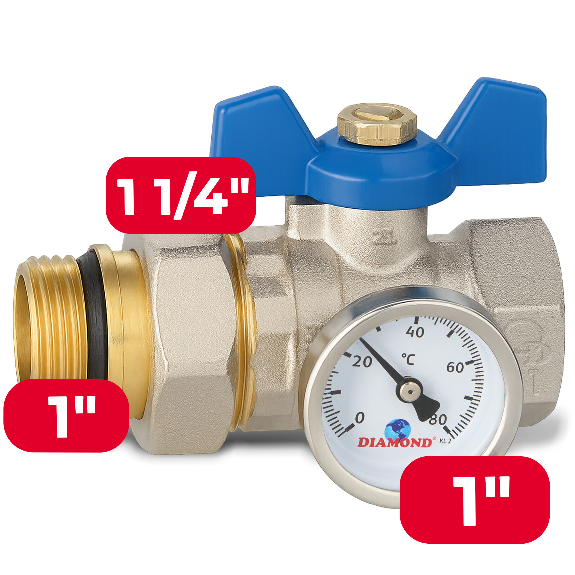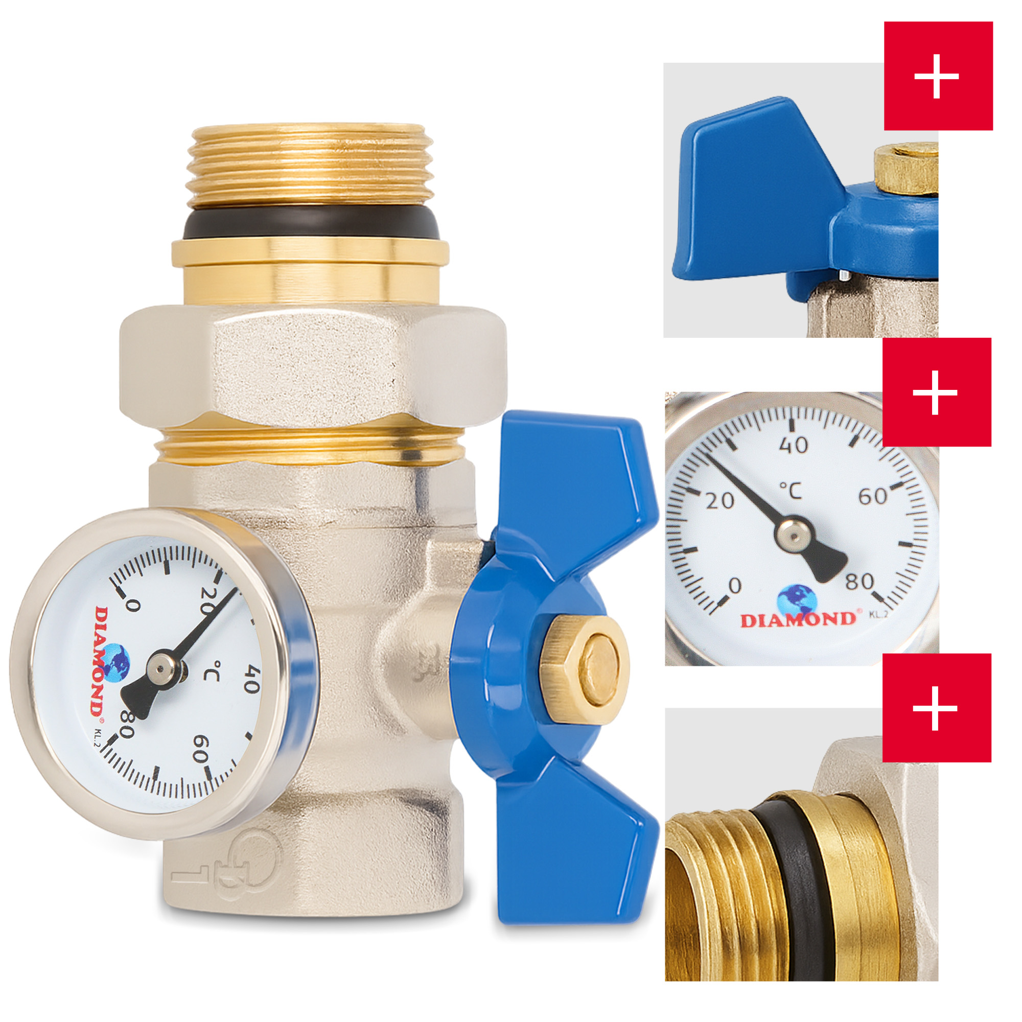 Kurek kulowy prosty ze śrubunkiem i termometrem został zaprojektowany do pracy w systemach wodociągowych i grzewczych.