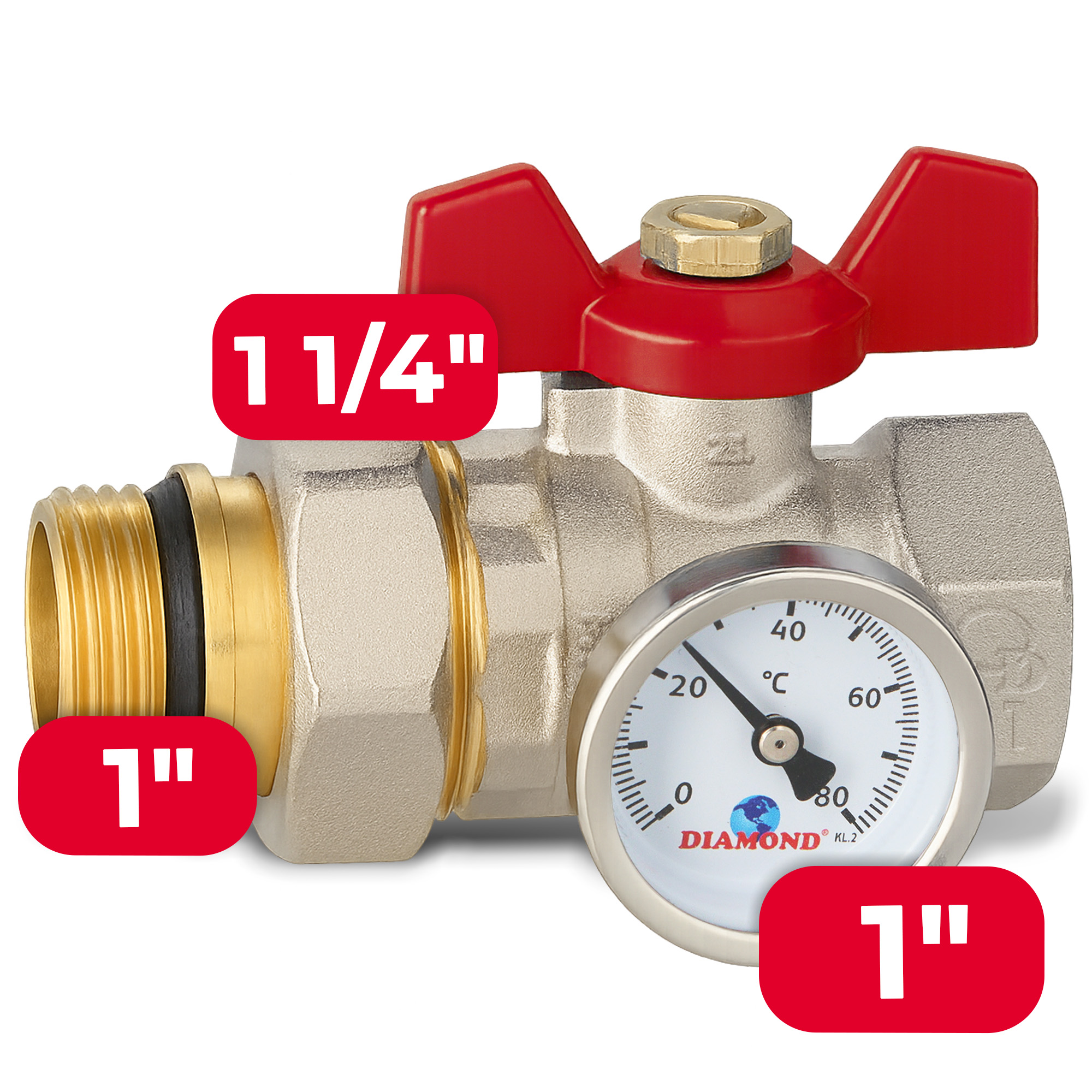 Kurek kulowy prosty ze śrubunkiem i termometrem został zaprojektowany do pracy w systemach wodociągowych i grzewczych.