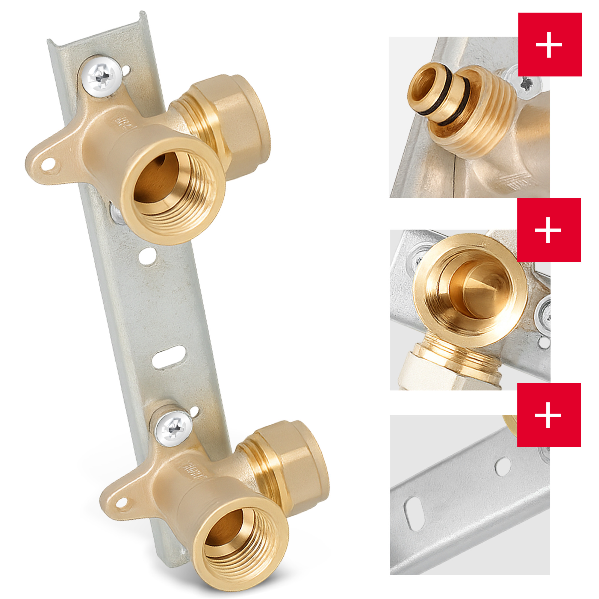 Produkt stanowi zestaw montażowy składający się z listwy oraz kolan mosiężnych z chromowaną powierzchnią. Został zaprojektowany z myślą o systemach opartych na rurach PEX.