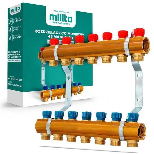 Rozdzielacz CO mosiężny 45 manualny - uzbrojony 7 obwody