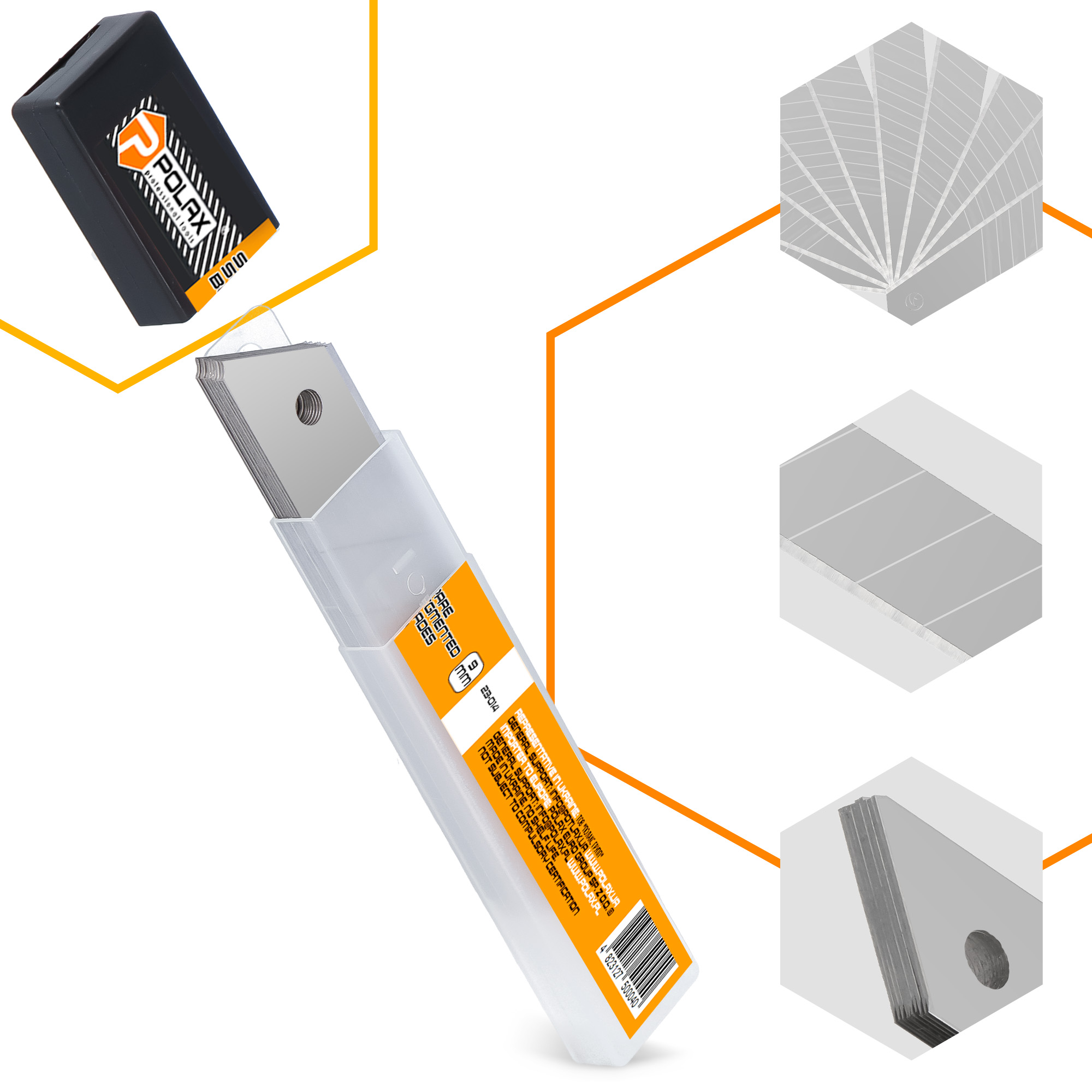Zbudowane z stali wysokowęglowej, oferują długotrwałą wytrzymałość i wysoką dokładność cięcia. Dzięki segmentowej budowie ostrza te zachowują ostrość – wystarczy oderwać zużyty segment, by odsłonić świeży, ostry odcinek. Ten system sprawia, że ostrza są idealnym wyborem do noży uniwersalnych, doskonałych w pracy z tapetami oraz innymi miękkimi materiałami, jak karton, guma, styropian, korek czy skóra.