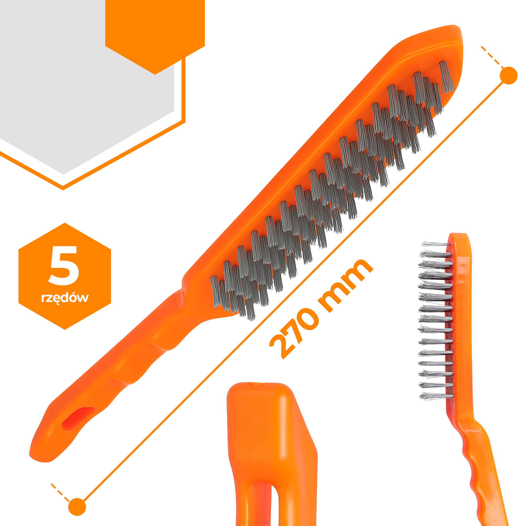 Metalowe włosie skutecznie czyści różne powierzchnie, eliminując nawet głęboko osadzony brud. Przydatna przy pracach remontowych, konserwacyjnych i hobbystycznych. Dzięki kompaktowej formie z łatwością dociera do zakamarków i trudno dostępnych miejsc.