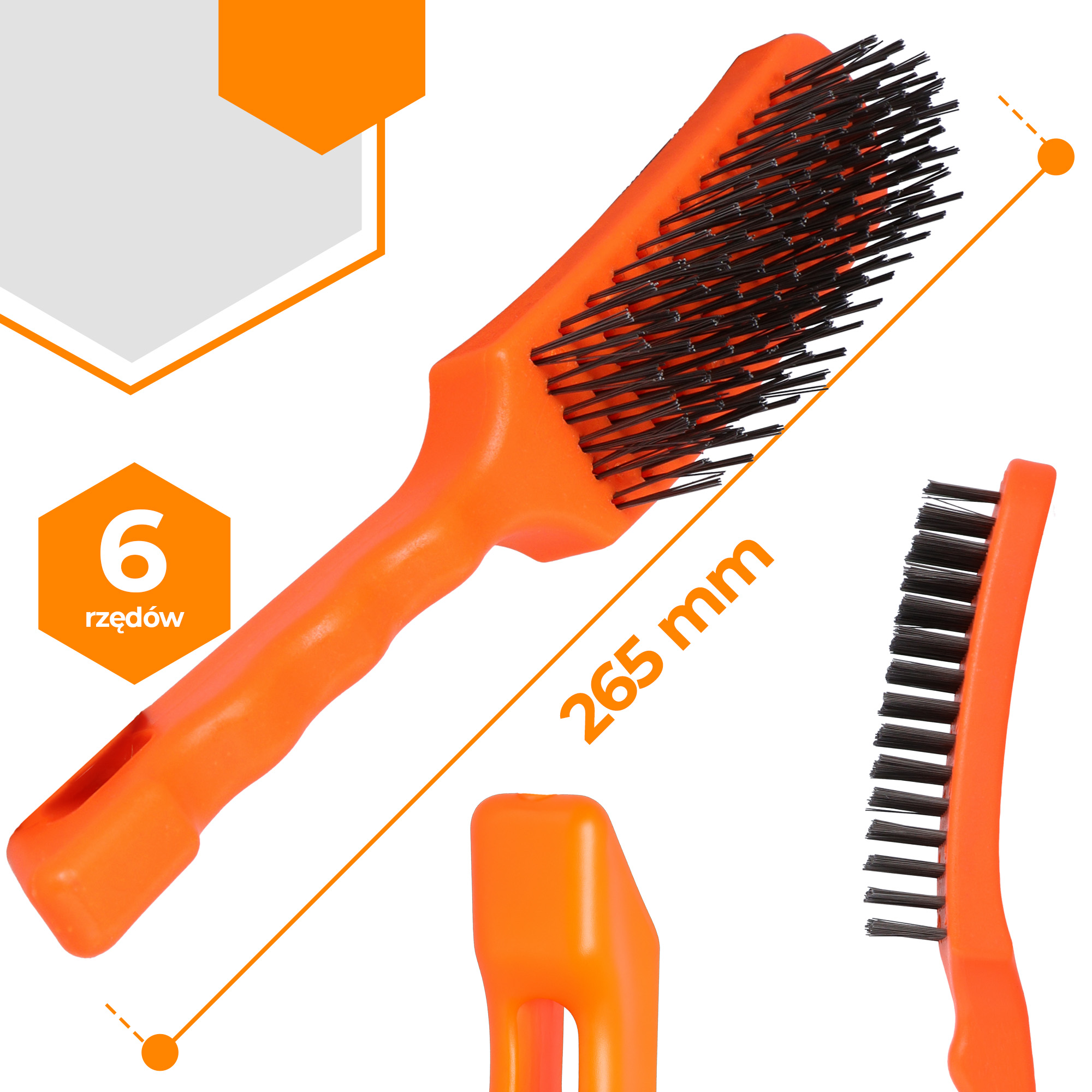 Metalowe włosie skutecznie czyści różne powierzchnie, eliminując nawet głęboko osadzony brud. Przydatna przy pracach remontowych, konserwacyjnych i hobbystycznych. Dzięki kompaktowej formie z łatwością dociera do zakamarków i trudno dostępnych miejsc.