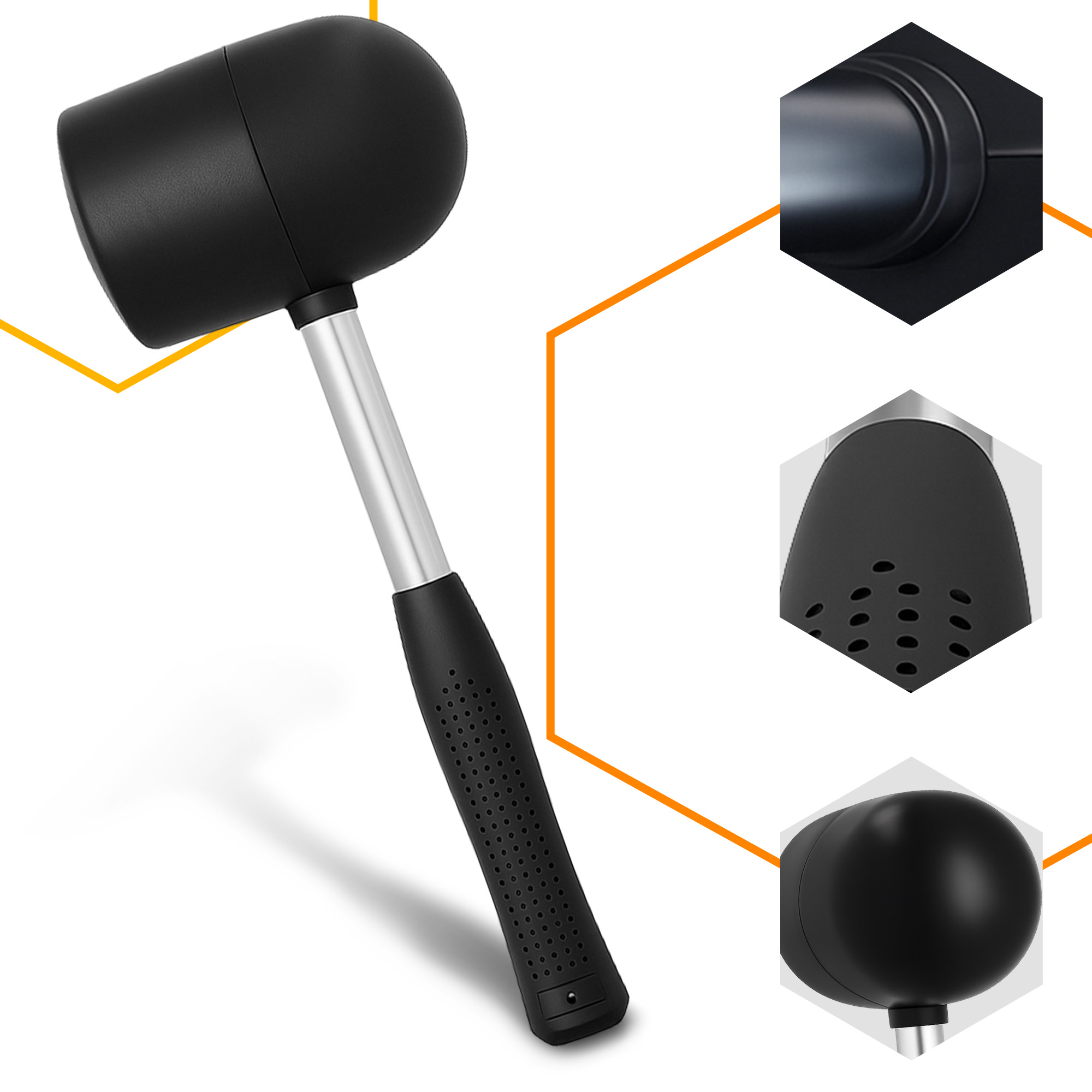 Młotek wyposażony jest w miękką, ale odporną gumową głowicę, co pozwala pracować na delikatnych materiałach bez ryzyka uszkodzenia.