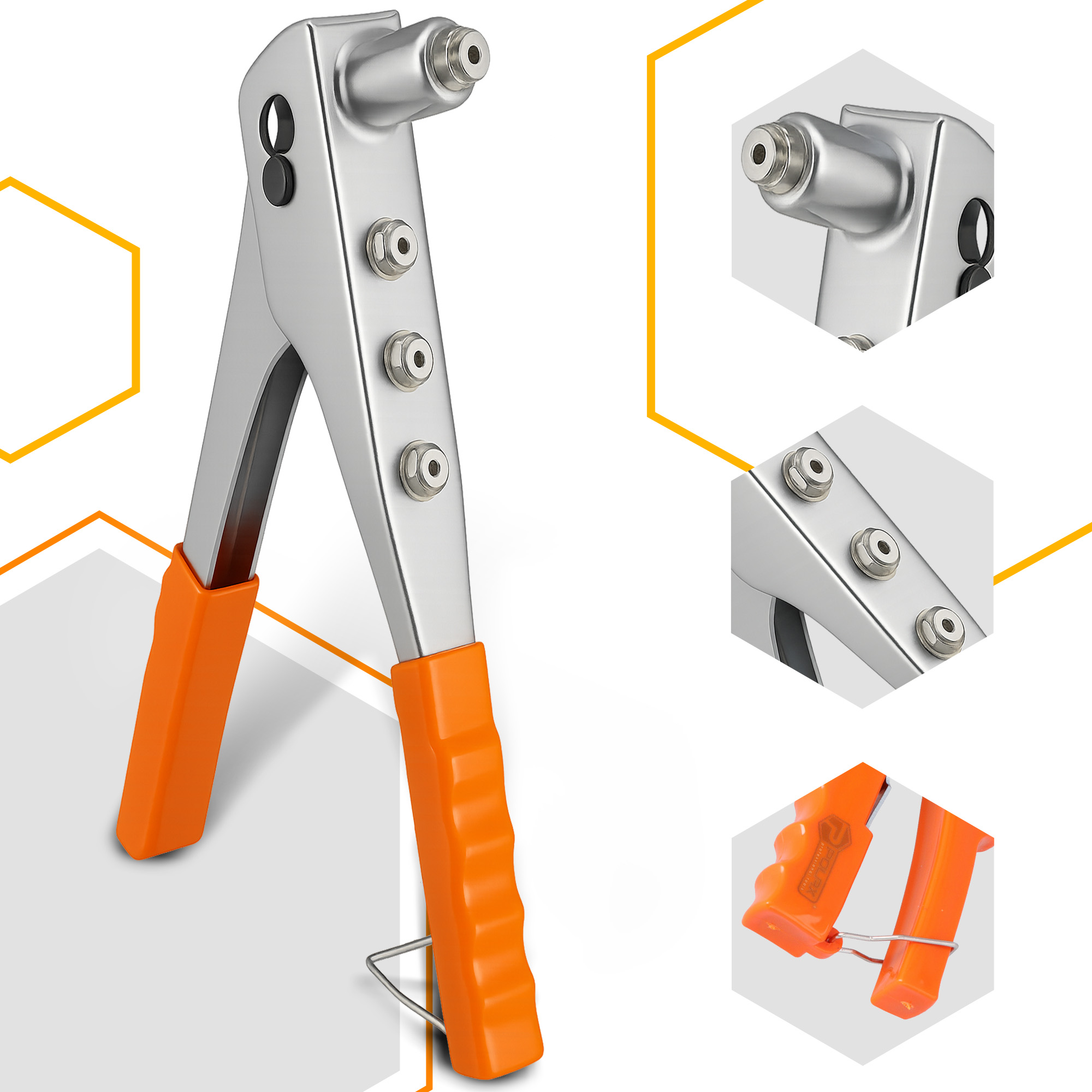 Korpus nitownicy wykonany z chromowanego metalu sprawia, że narzędzie jest odporne na korozję i zużycie mechaniczne.