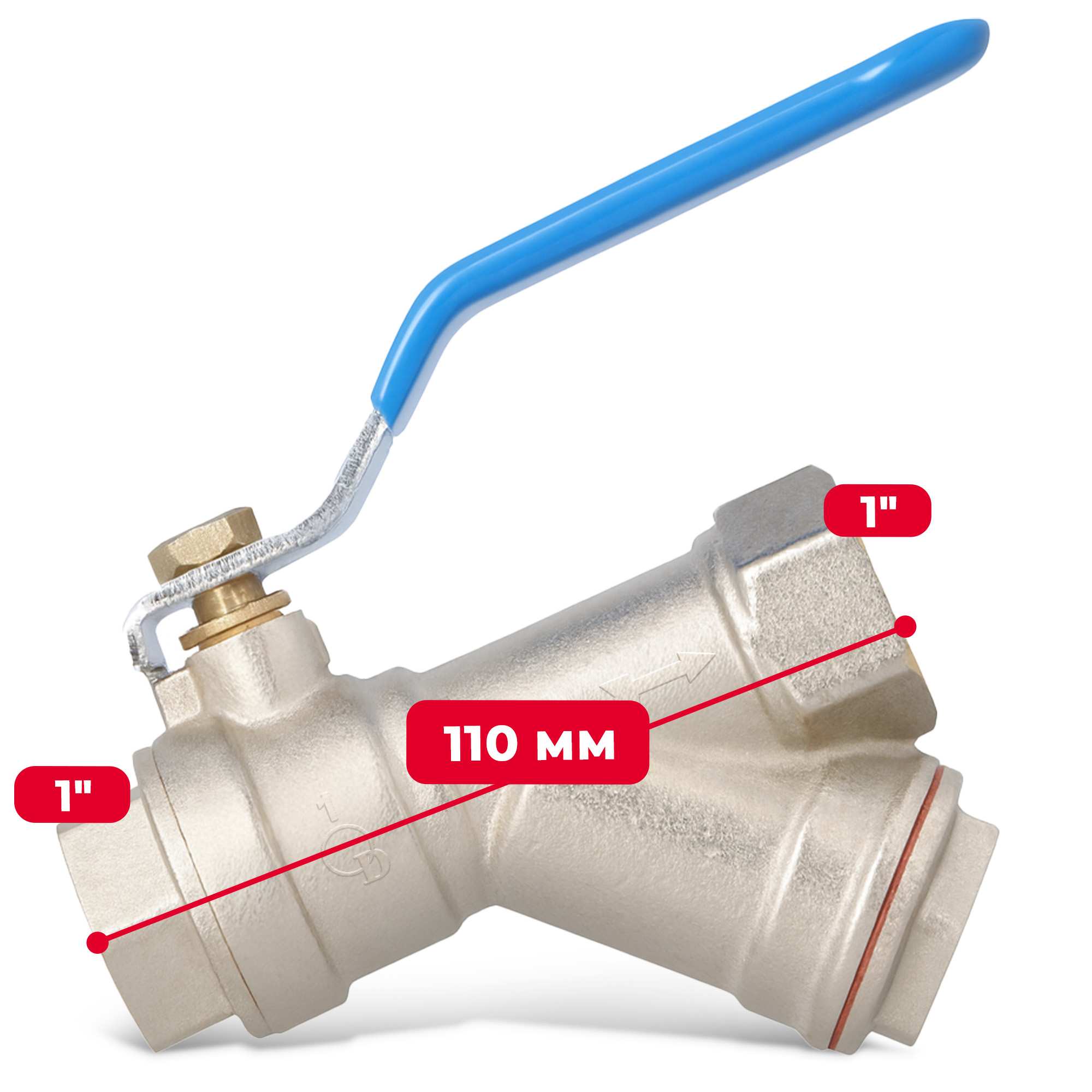 Zawór kulowy z filtrem skośnym i dławikiem 30 bar 1'' GW x 1'' GW | Kup Online!