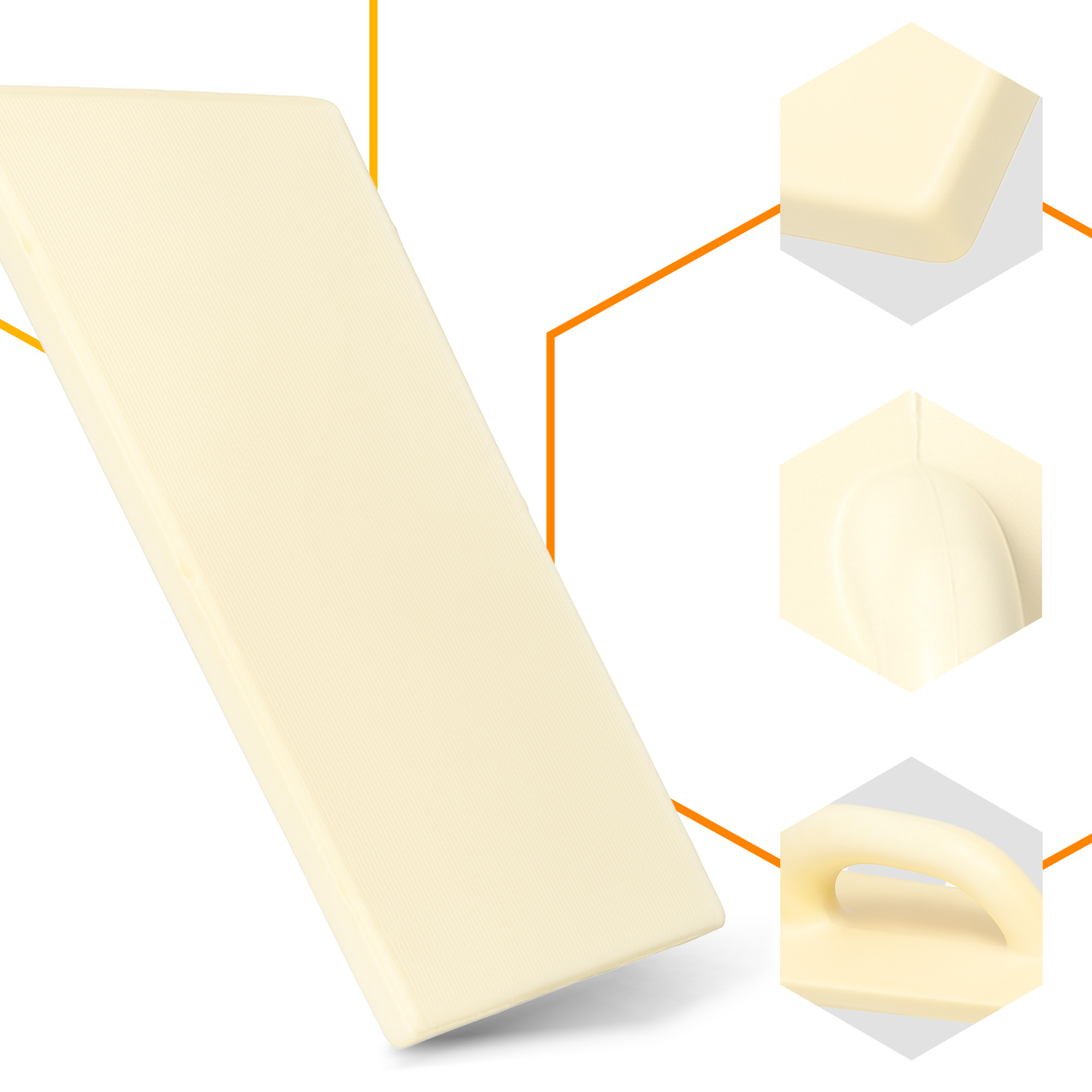 Poliuretan o gęstości 190 kg/m³ sprawia, że narzędzie jest wyjątkowo lekkie, a jednocześnie odporne na zużycie. Ma to znaczenie podczas wielogodzinnej pracy, gdzie liczy się komfort i precyzja.