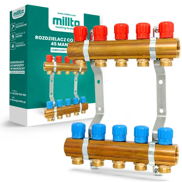 Rozdzielacz odpowiada za równomierne rozprowadzanie ciepła w przewodach instalacji centralnego ogrzewania oraz ogrzewania podłogowego. Ten rodzaj kolektora służy do manualnej regulacji temperatury systemu.