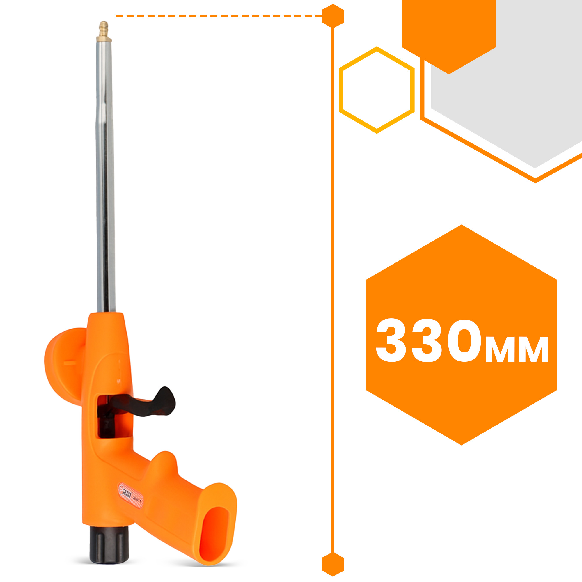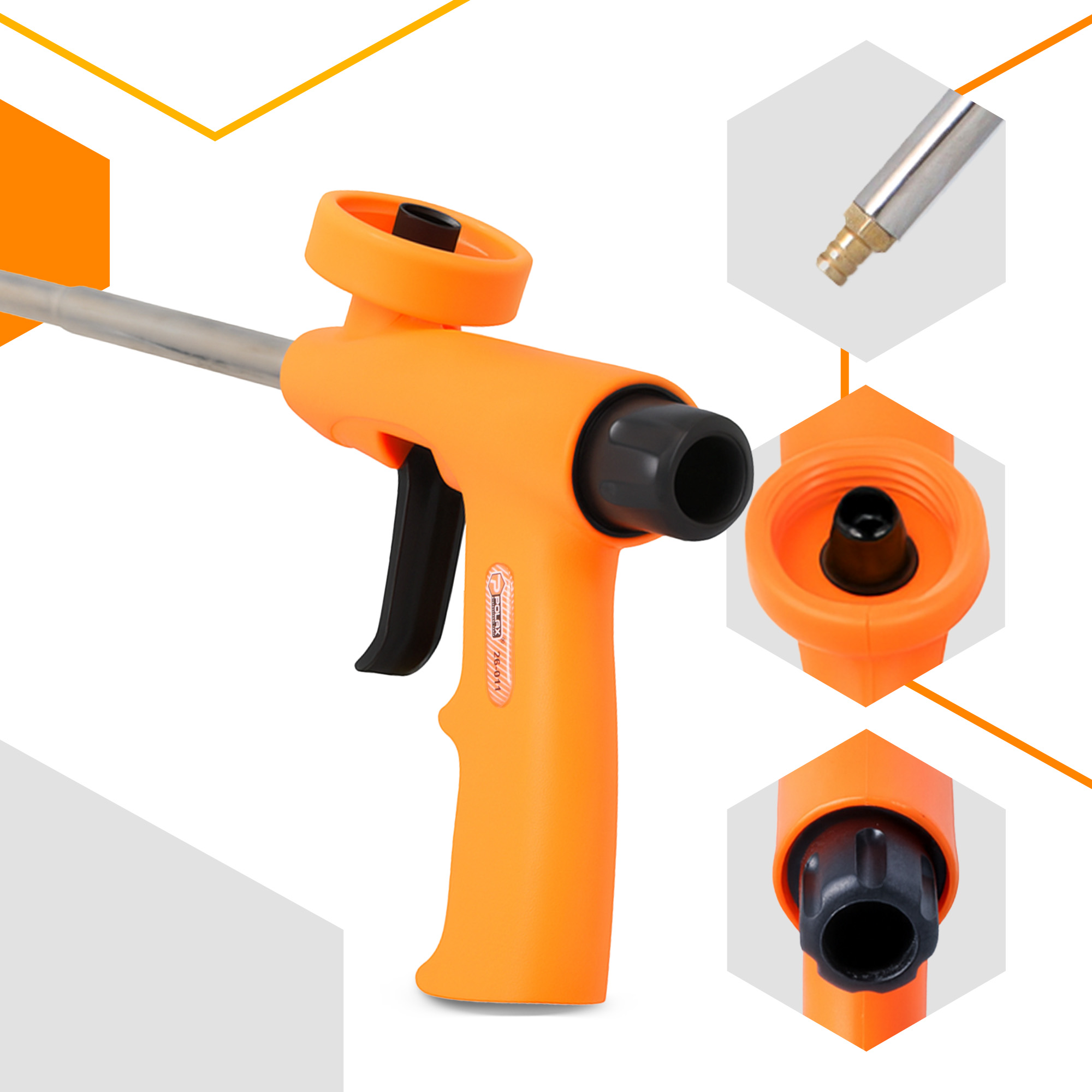 Korpus wykonany z tworzywa sztucznego sprawia, że pistolet do piany jest niezwykle lekki, co zmniejsza zmęczenie rąk przy dłuższej pracy.