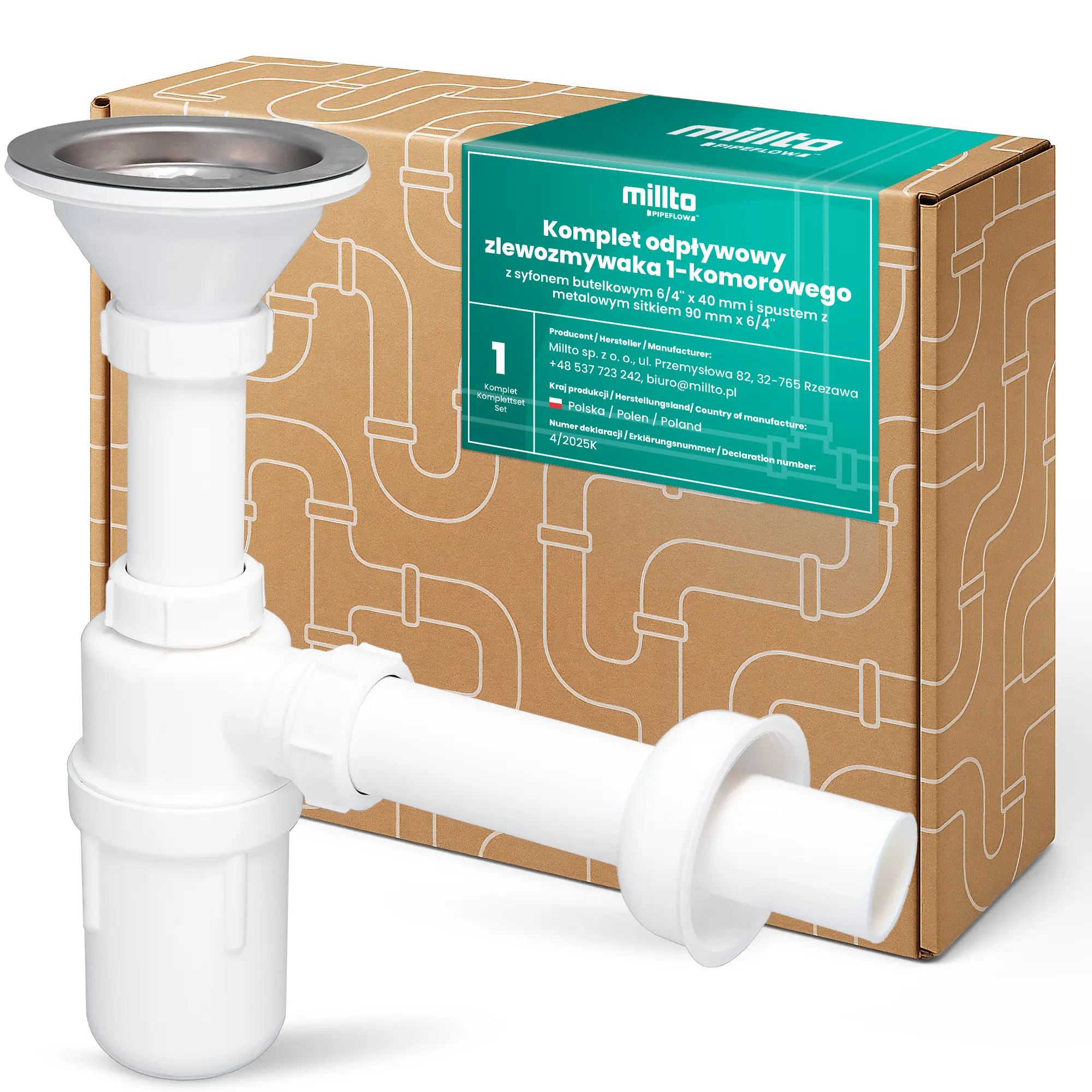 Ten syfon ma wszystko, co potrzebne do sprawnego podłączenia odpływu w zlewie, bez konieczności dokupowania dodatkowych elementów. Każda część została dobrana tak, aby zapewnić szybkie i bezproblemowe uruchomienie instalacji.