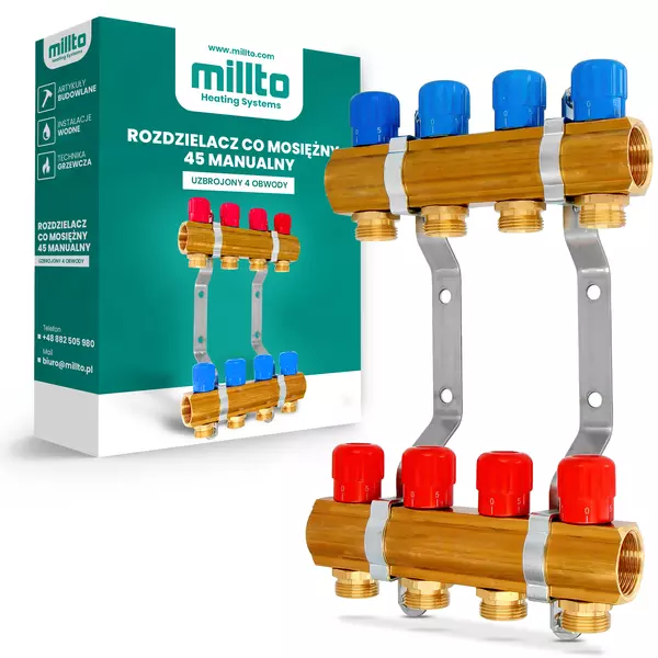 Rozdzielacz CO mosiężny 45 manualny - uzbrojony 4 obwody