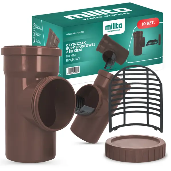 Czyszczak rury spustowej z sitkiem 110 mm brązowy 10 szt.