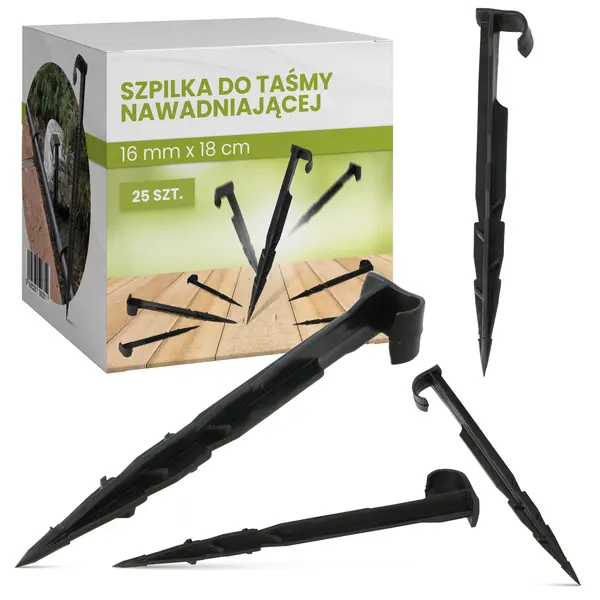 Jej zadaniem jest stabilizacja węży nawadniających. Dzięki temu system działa wydajniej i bezpieczniej, a ryzyko usterek się zmniejsza. Szpilka zapobiega przesuwaniu instalacji, dlatego rośliny są podlewane stale i równomiernie.