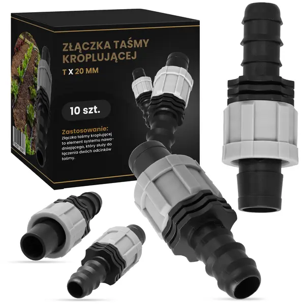 Produkt przydaje się podczas rozbudowy systemu oraz przedłużania linii nawadniającej. Element możesz wykorzystać również jako reparator w przypadku uszkodzenia taśmy.