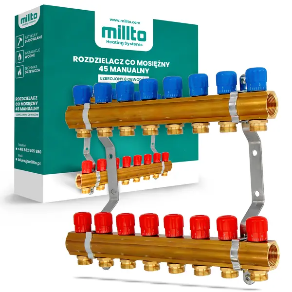 Rozdzielacz odpowiada za równomierne rozprowadzanie ciepła w przewodach instalacji centralnego ogrzewania oraz ogrzewania podłogowego. Ten rodzaj kolektora służy do manualnej regulacji temperatury systemu.
