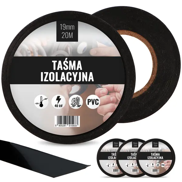 Taśma izolacyjna 19 mm x 20 m czarny 3 szt.