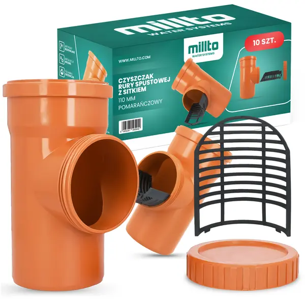 Czyszczak rury spustowej z sitkiem 110 mm pomarańczowy 10 szt.