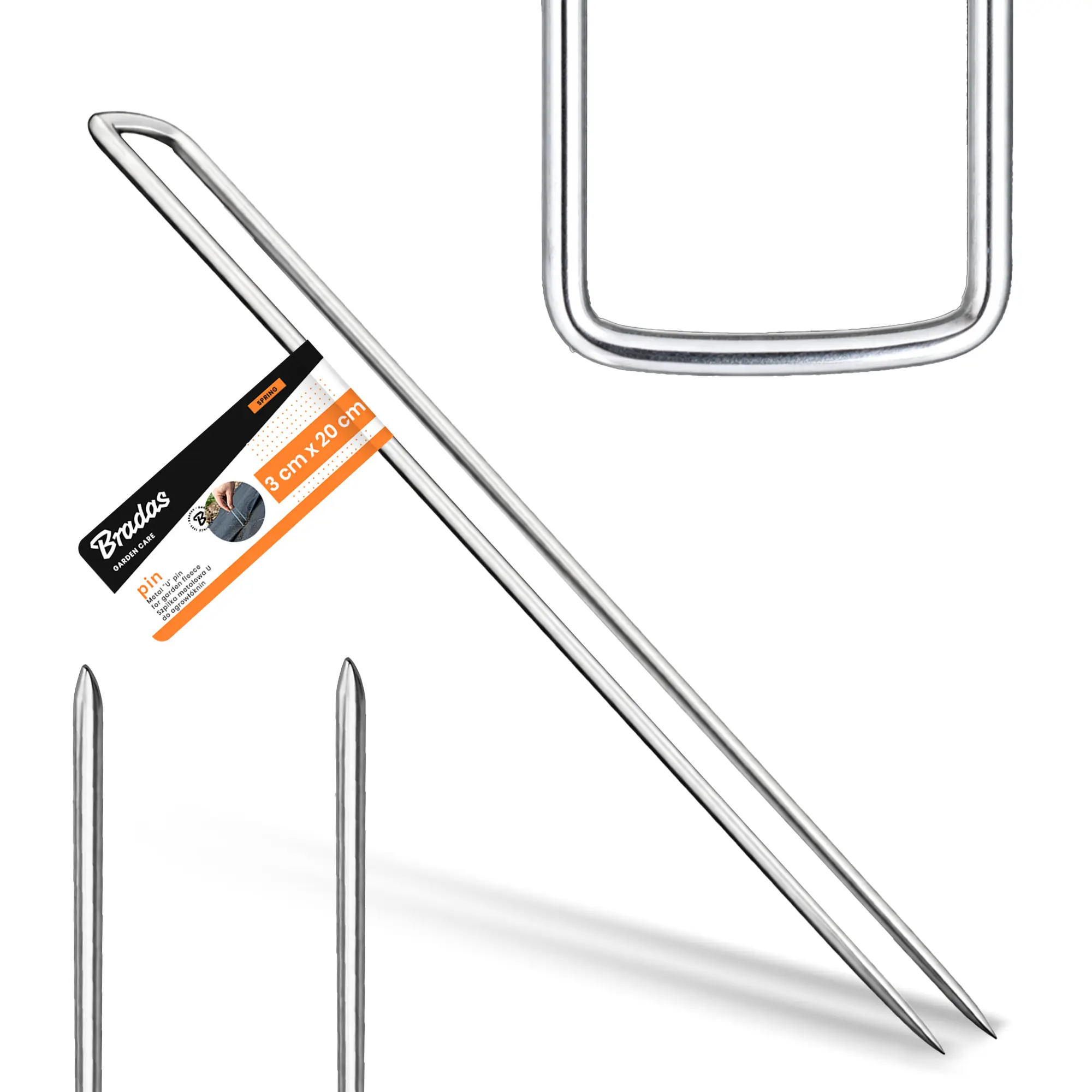 Szpilka w kształcie U została zaprojektowana z myślą o stabilnym utrzymaniu tkanin ogrodniczych na podłożu. Stal galwanizowana nadaje konstrukcji odpowiednią sztywność i odporność na warunki atmosferyczne.