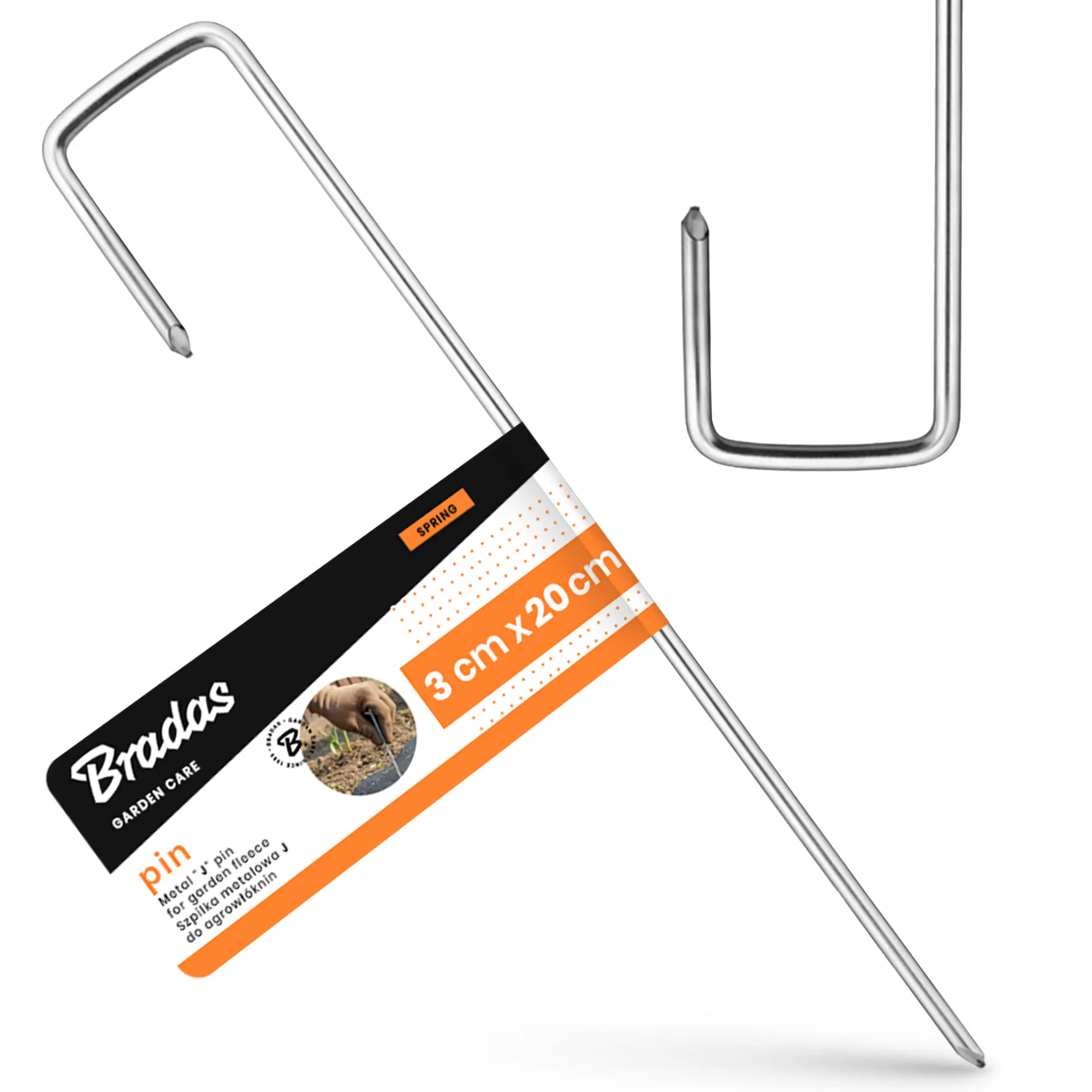 Metalowa szpilka galwanizowana w kształcie J została zaprojektowana z myślą o trwałym i bezpiecznym mocowaniu materiałów ogrodniczych. Stalowa konstrukcja zapewnia odpowiednią sztywność, a jednocześnie pozwala na łatwe osadzenie w różnych typach gruntu – od lekkiego po zbity.