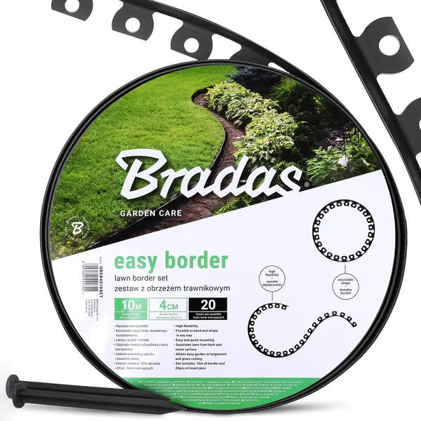 Elastyczne obrzeże trawnikowe z kotwami zapewnia pełną kontrolę nad wyglądem ogrodu, umożliwiając precyzyjne oddzielenie trawnika od kory, kamieni lub żwiru. Możliwość dowolnego kształtowania sprawia, że produkt idealnie sprawdza się przy rabatach, ścieżkach i nowoczesnych aranżacjach krajobrazu.