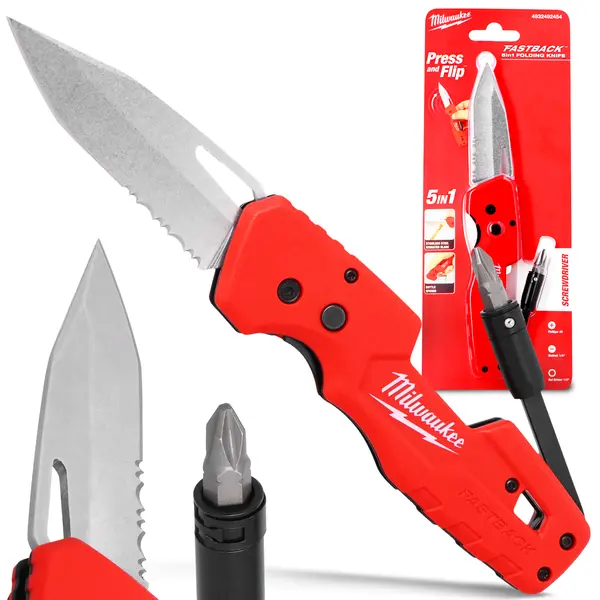 Składany nożyk ze stali nierdzewnej Fastback™ 5 w 1 redefiniuje pojęcie noża monterskiego. To nie tylko ostre narzędzie, ale cały zestaw podręczny zamknięty w jednej obudowie.