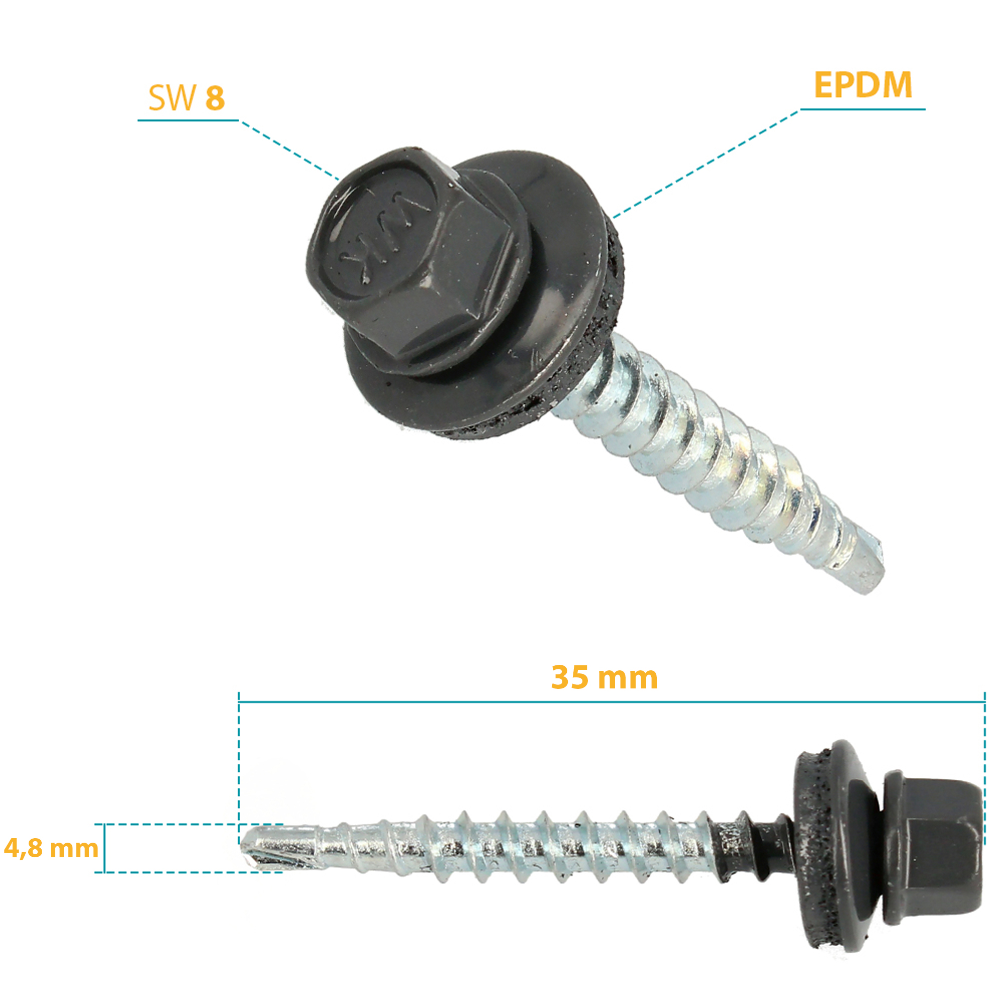 Wkręt farmerski samowiercący odznacza się wyjątkową precyzją działania. Dzięki końcówce samowiercącej nie musisz wykonywać otworów za pomocą wiertarki - możesz od razu zabrać się za montaż. Element wykorzystywany jest w przypadku typowych materiałów stosowanych do wykończenia dachu takich jak blacha, blachodachówka i obróbki blacharskie.