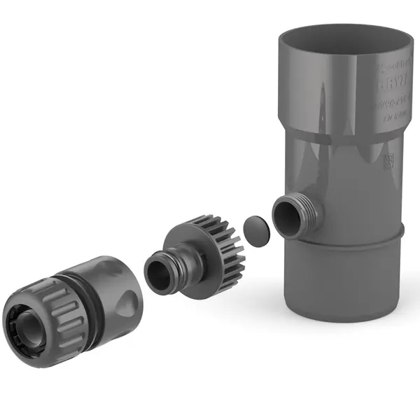 Elementy dołączone do kompletu pozwalają na szybkie podłączenie łapacza do specjalnego zbiornika. To do niego zbierana jest woda deszczowa, którą następnie można wykorzystać w różnych pracach ogrodowych i nie tylko.
